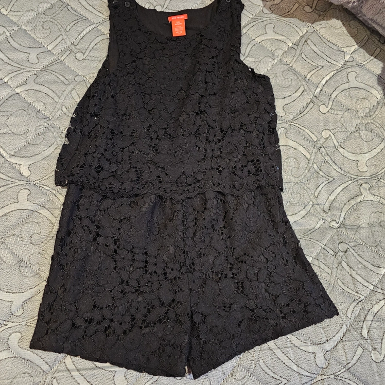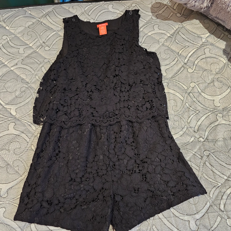 10Black lace romper. Sleeveless. Size XL (14). Made in Bangladesh.