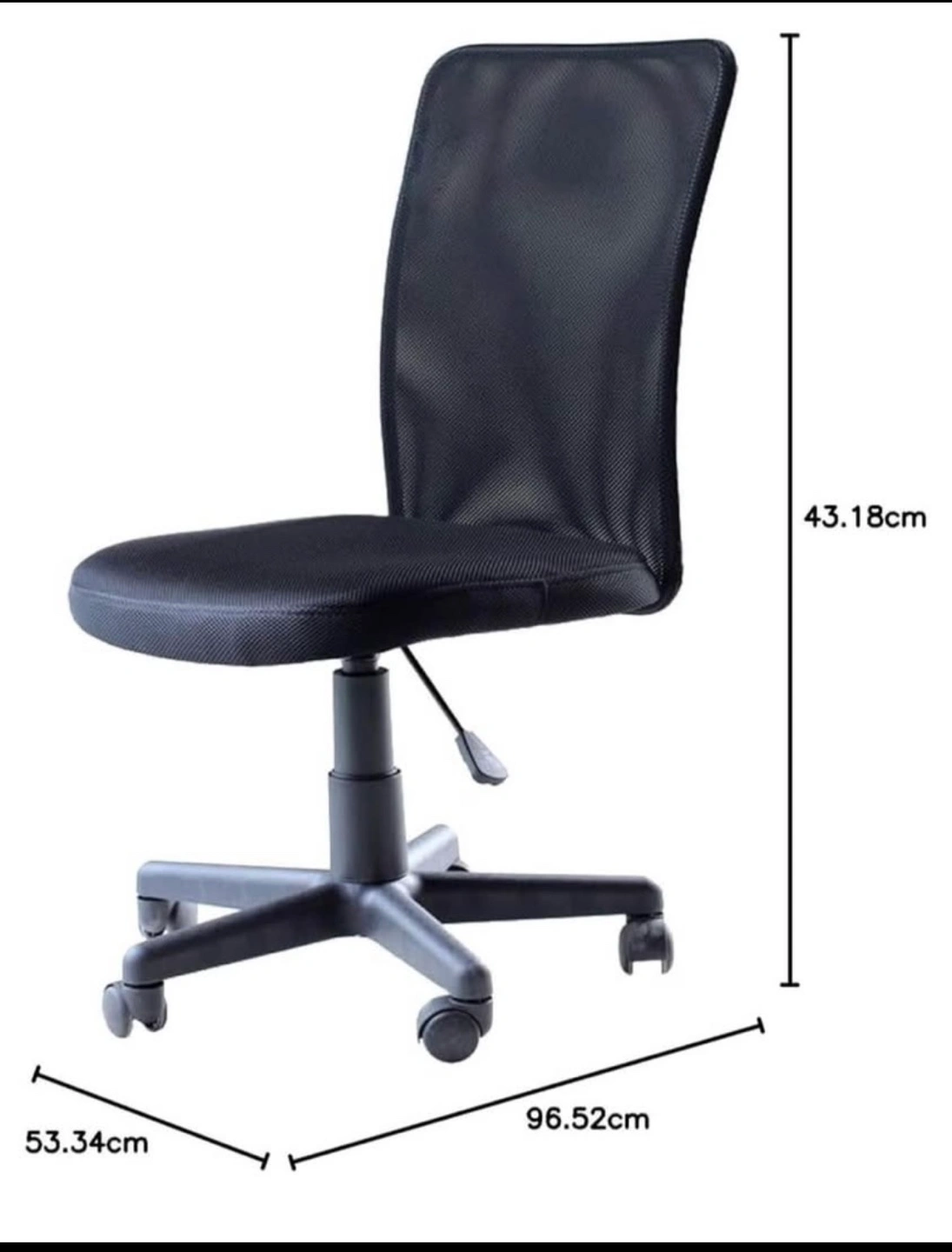 Comfortable office chair. Mesh backrest and padded seat. Five-star base with casters. Great for home or office use.