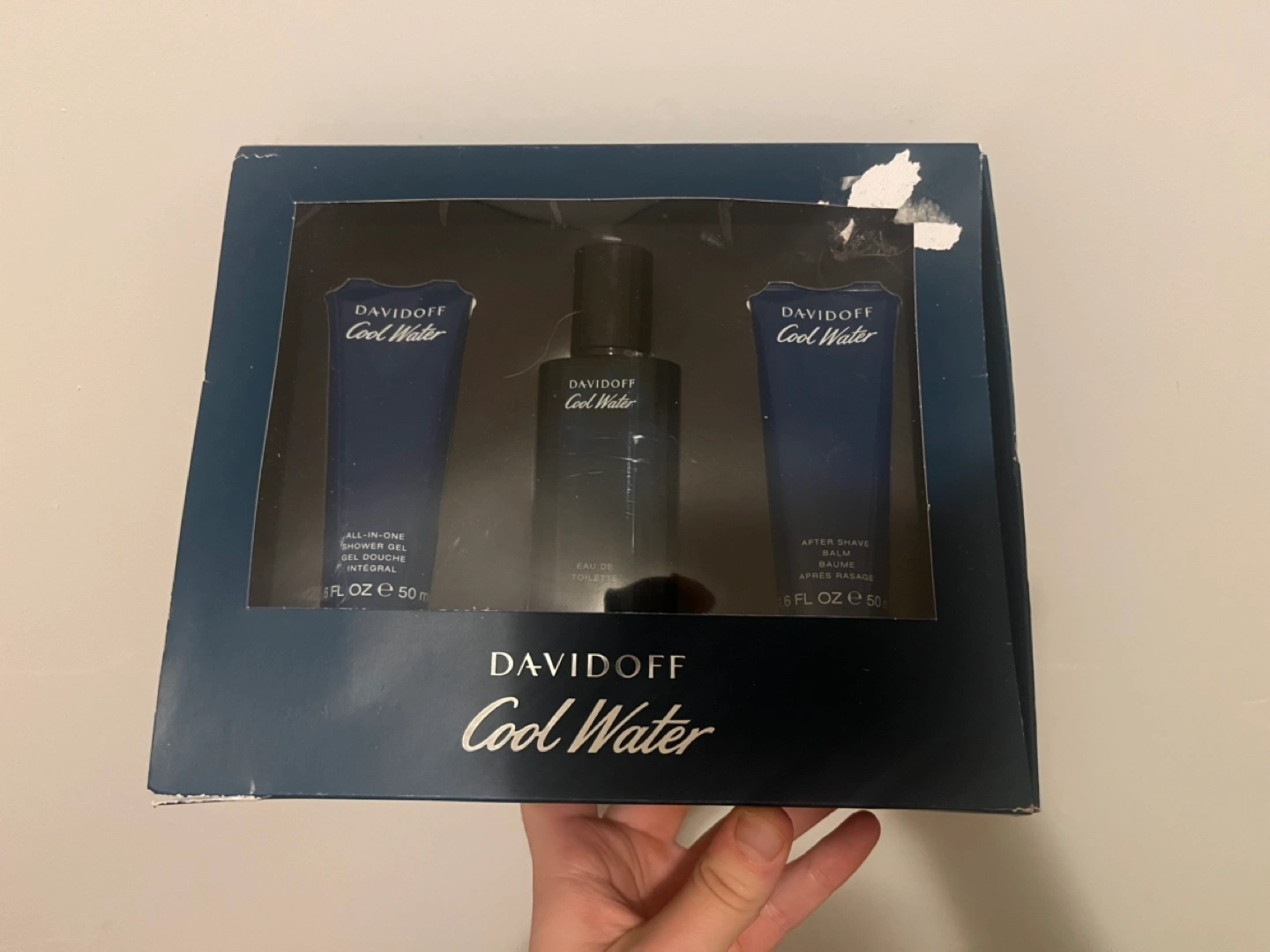 Includes shower gel, after shave, and cologne. Scent - “Cool Water”