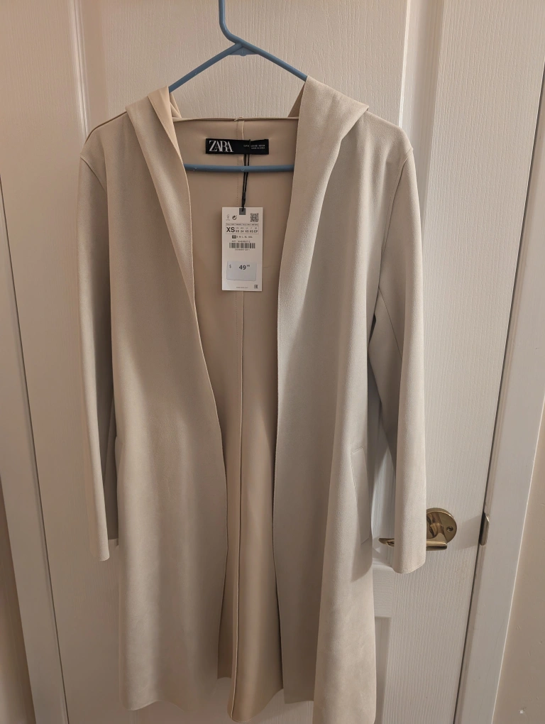 Lightweight suede hooded jacket. Neutral beige colour. Size XS. brand new with tags! 🙂