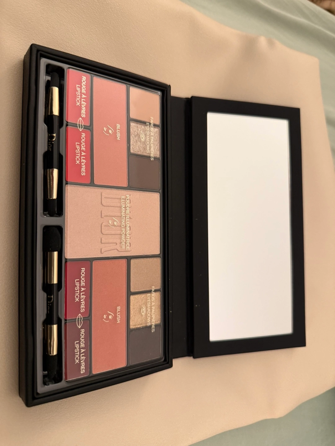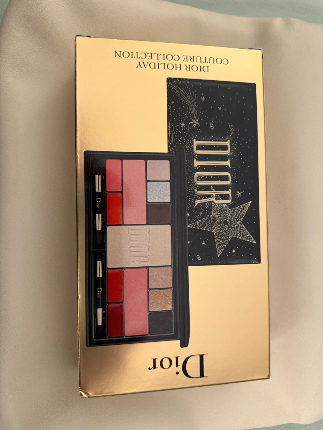 Dior Holiday Couture Collection makeup palette. Includes lipsticks, blush, eyeshadows, and illuminating powder. Compact with mirror. New, in box. Cash only.