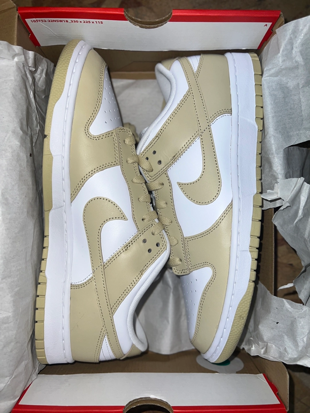 5Beige and white low-top sneakers. New in box. Classic design. Leather upper.