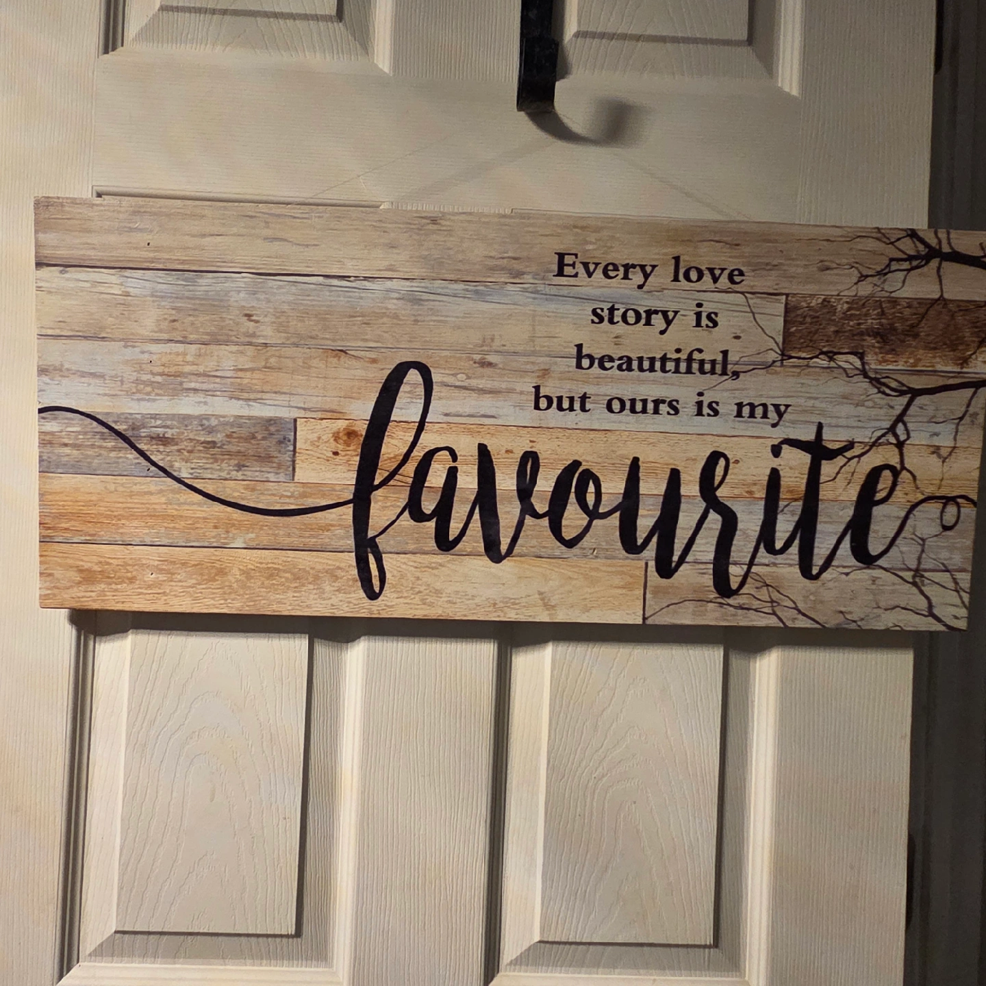 1192ft x 1ft "Every love story is beautiful, but ours is my favourite" includes hanging hardware on back