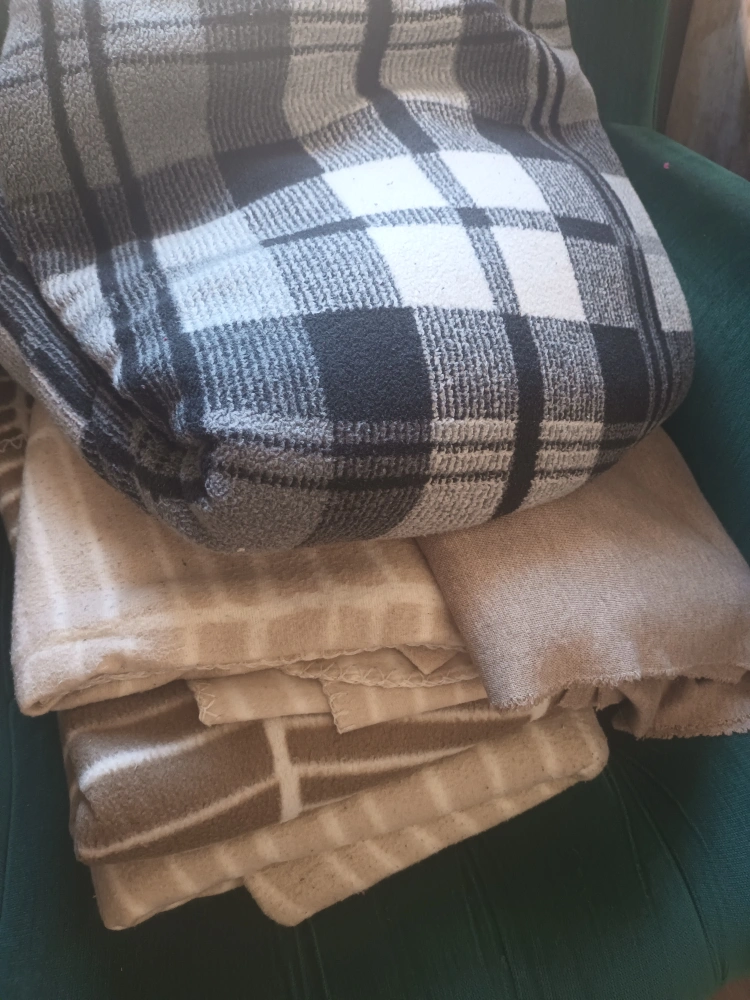 Four soft blankets, various colours and patterns. Great for layering or using individually. Good condition. Soft and warm.