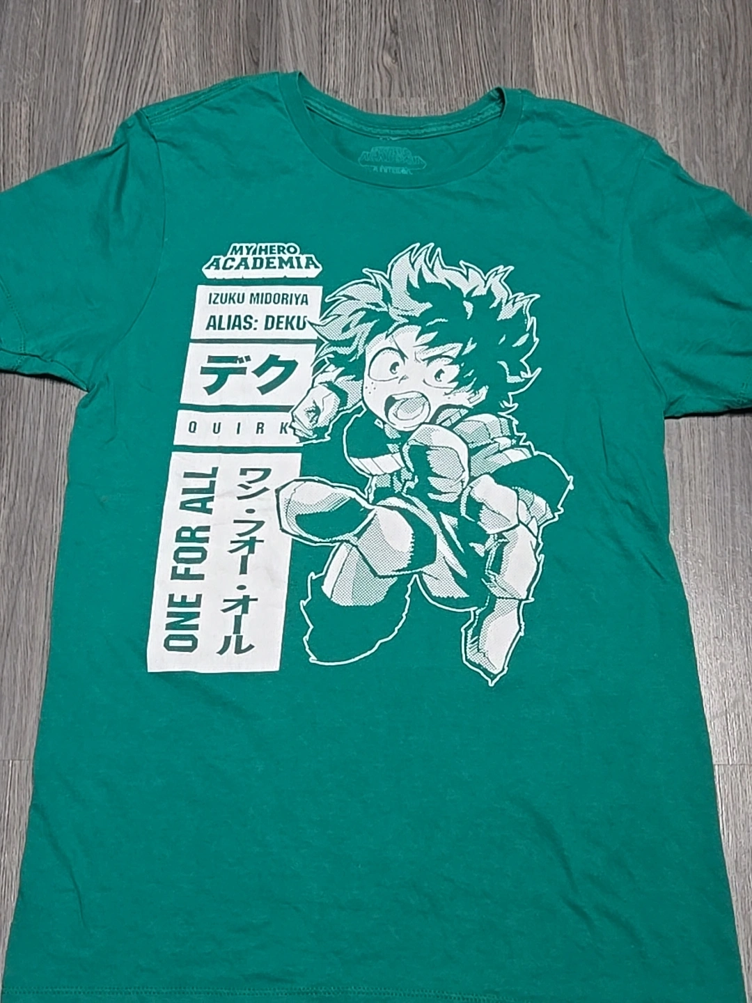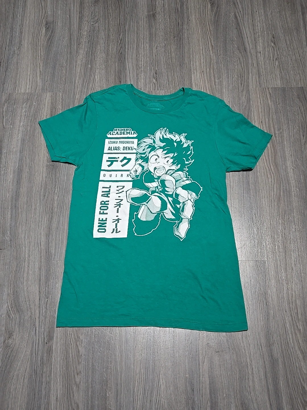 Green adult-sized t-shirt. Features graphic of Deku from My Hero Academia. 100% cotton. Machine wash cold. men's medium Great Condition P/U in Blackfalds