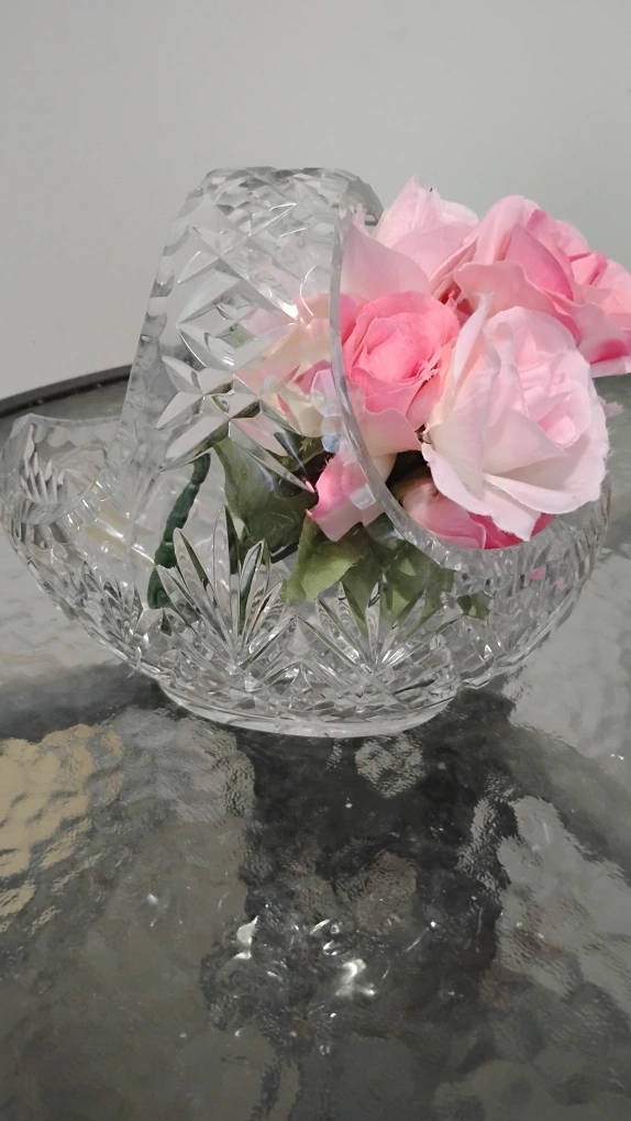 Vintage crystal bowl design. Features a handle. Perfect for a centerpiece