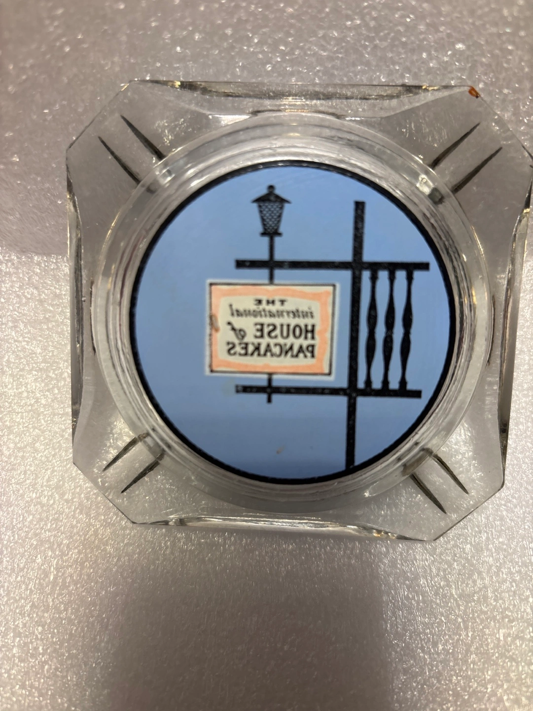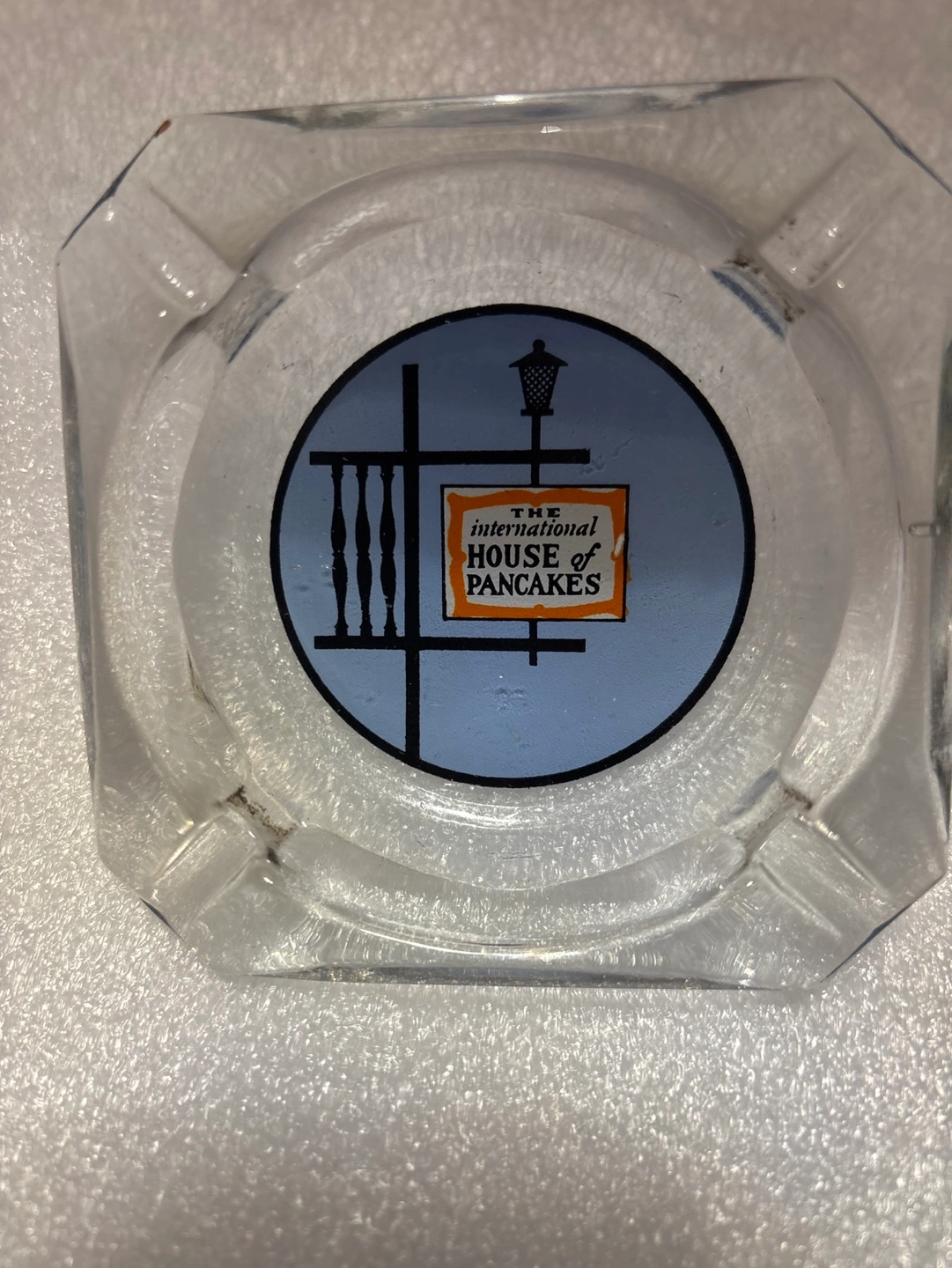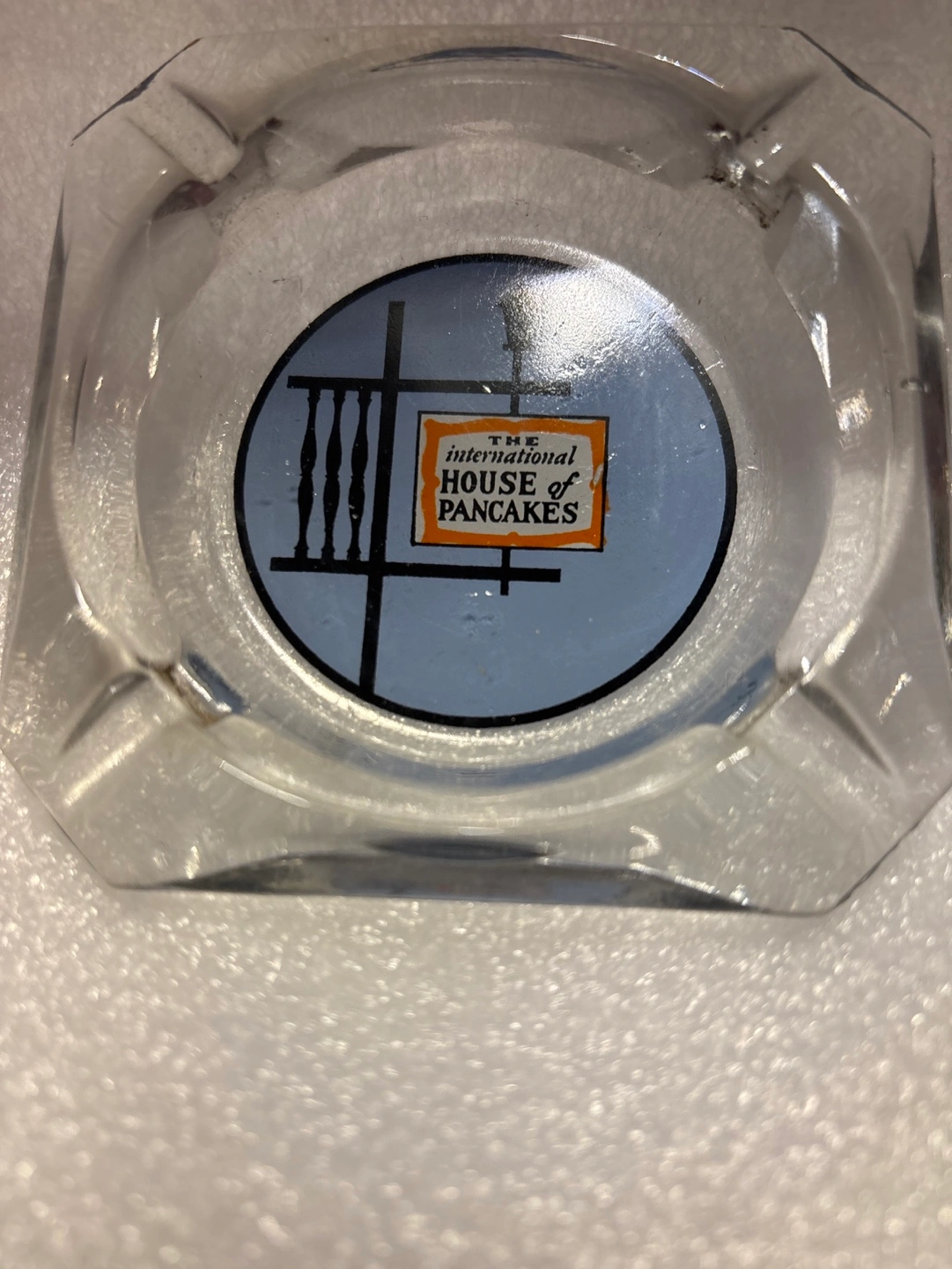 36Vintage international House of pancake ashtray. Glass ashtray. Features IHOP logo. Octagonal shape.