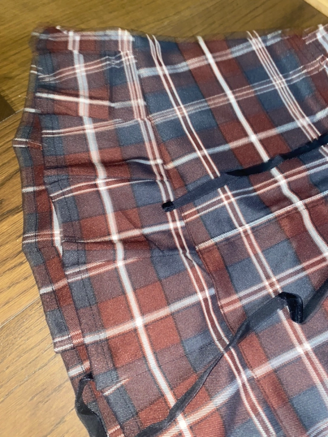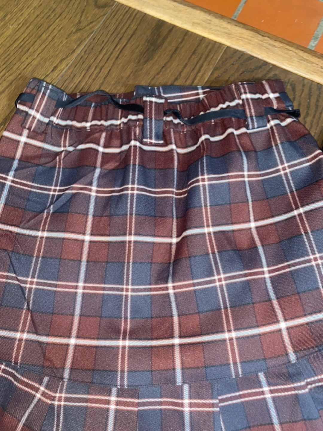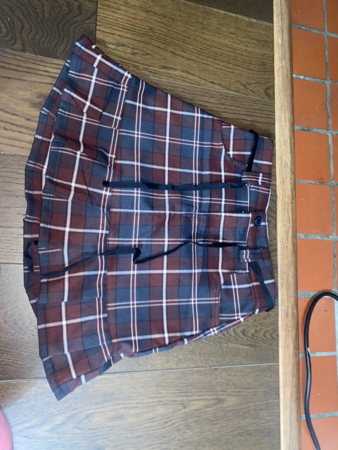 Mini pleated skirt. Button and fly closure Tie belt, stretchy on the back. Plaid print 80% polyester, 18% rayon, 2% spandex I’m usually a size XXS or XS and this felt too loose. it supposed be a bit mid rise low waisted. Fits more of a size small. no shorts inside, has pockets. only worn it once. Has ruffles the bottom the skirt. Ardene model wearing the skirt.