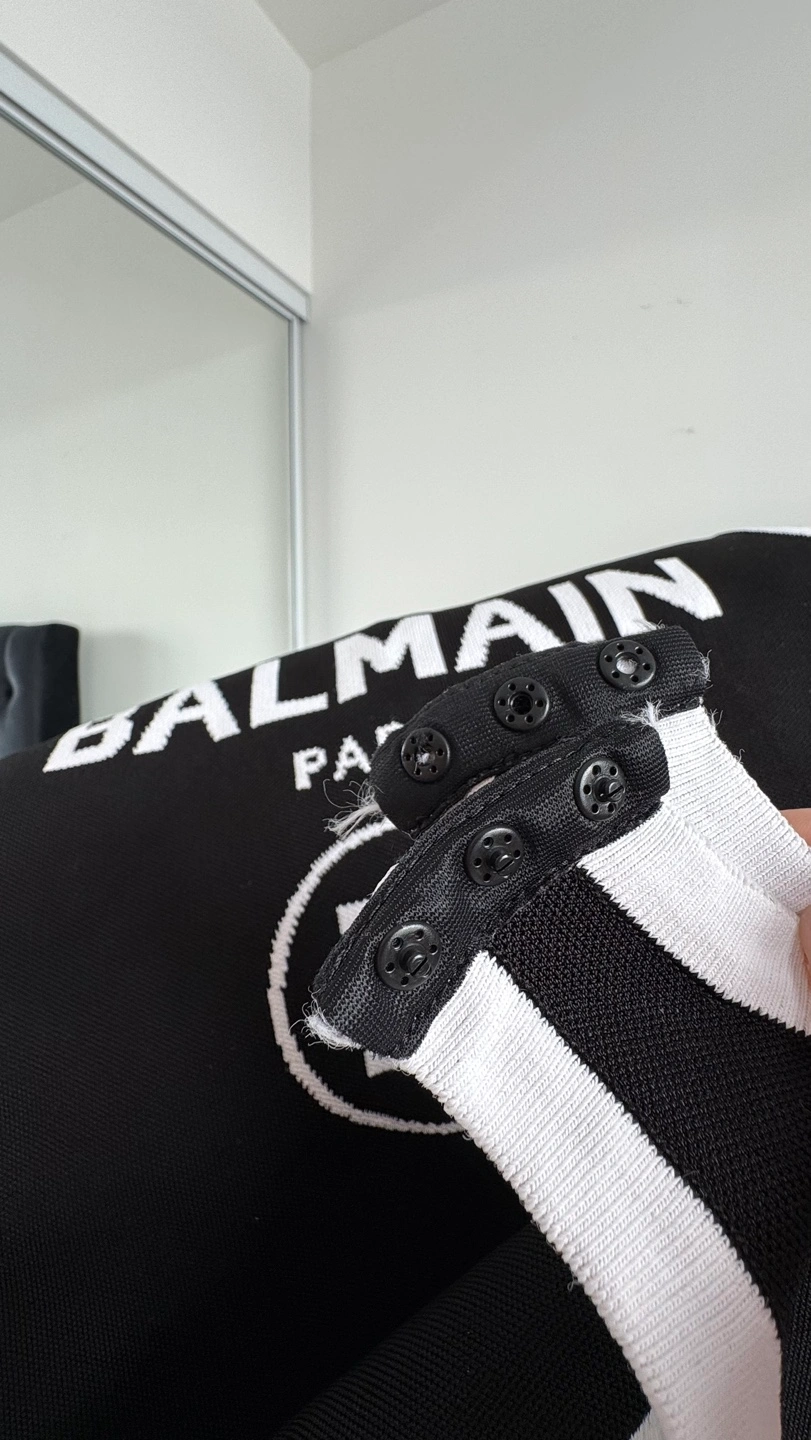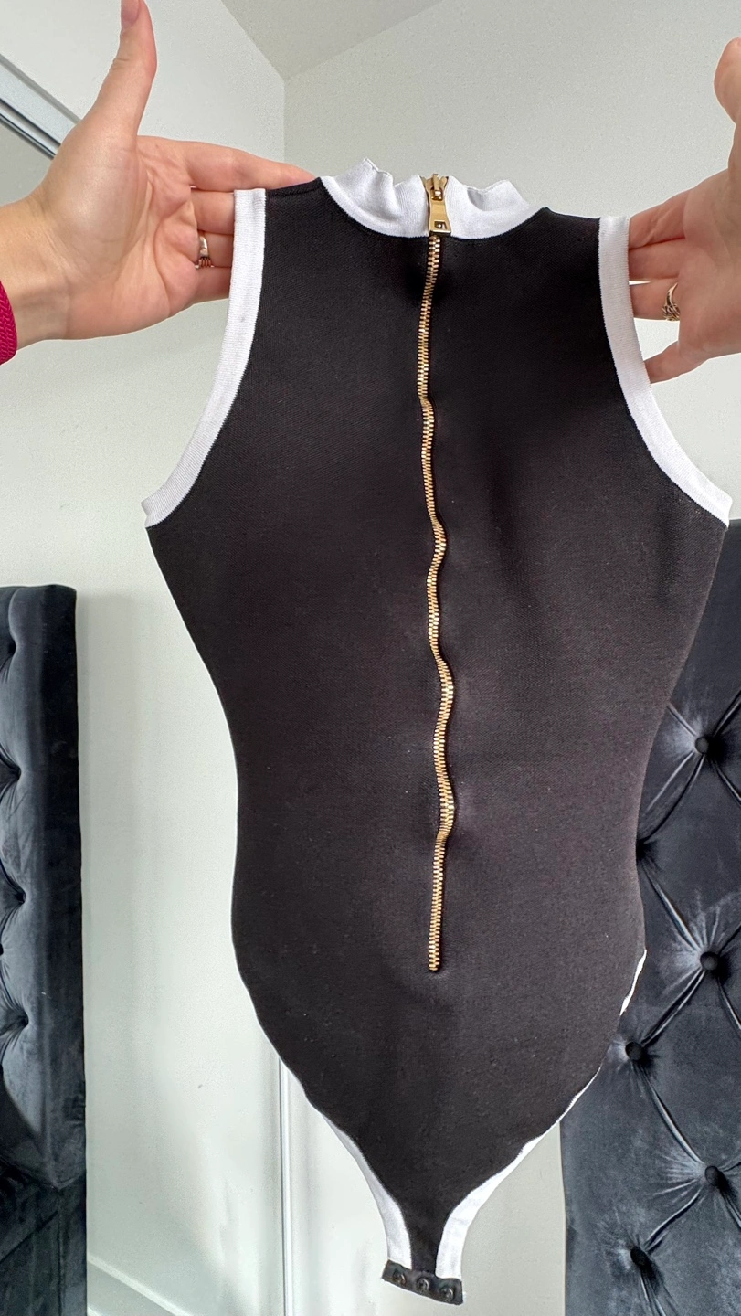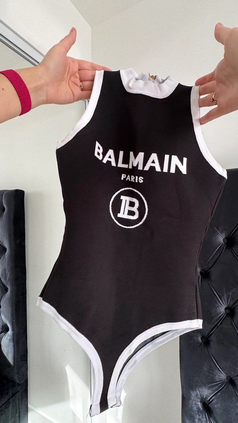 116Balmain Black Knit Logo Bodysuit Authentic. Size: Medium Very good condition 9/10 (inside tag cut off) Location Etobicoke