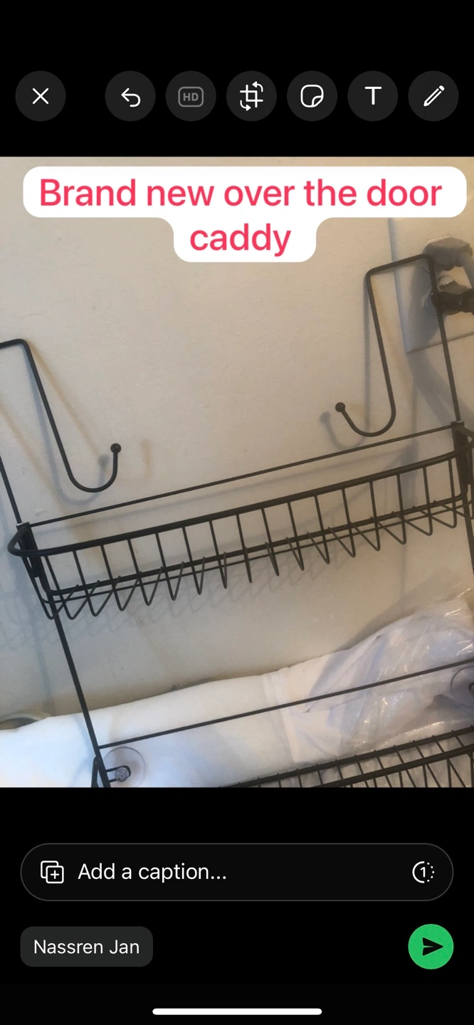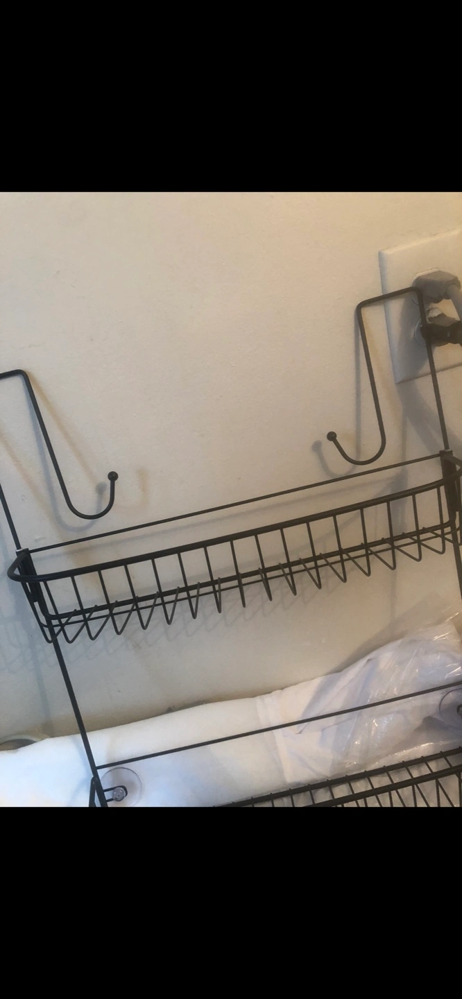 Brand new over the door caddy. Black metal construction. Perfect for bathroom or closet organization.