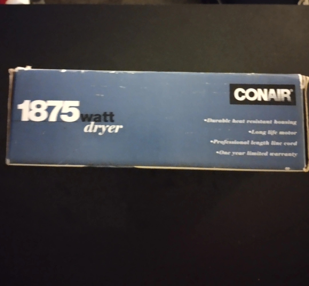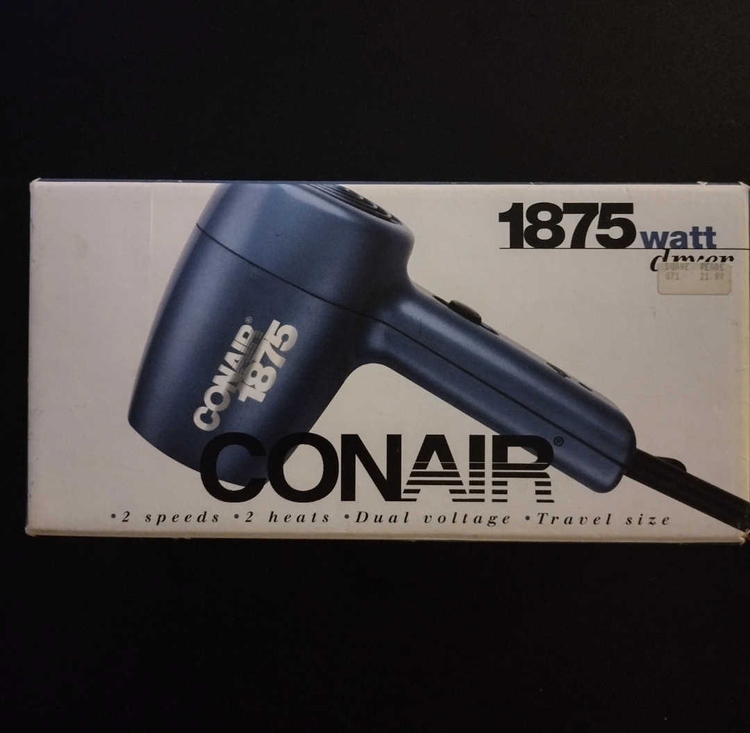 1000+Vintage Conair 1875-watt hair dryer. Dual voltage. Two speeds and two heat settings. Travel size. Comes in original box.