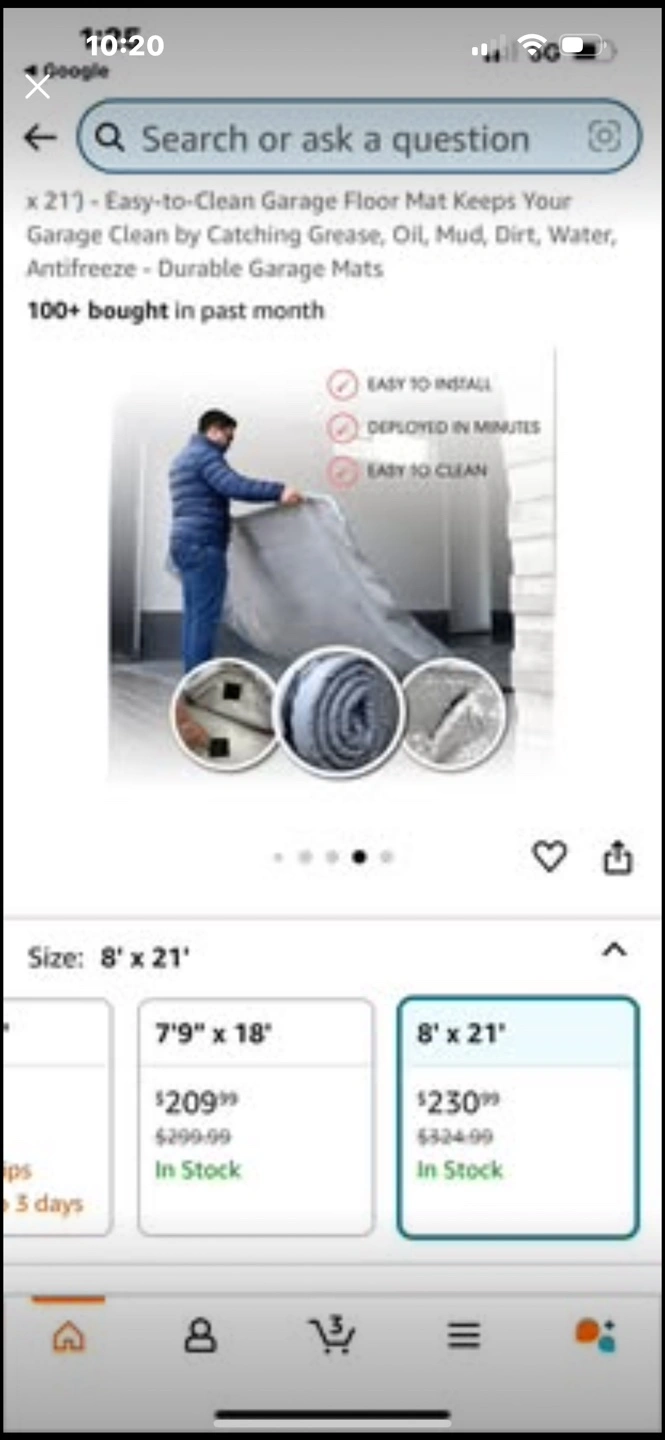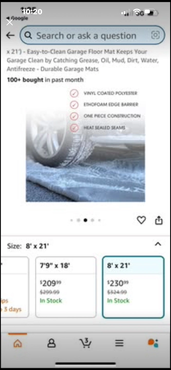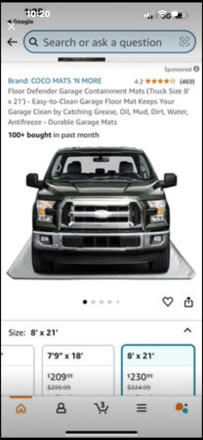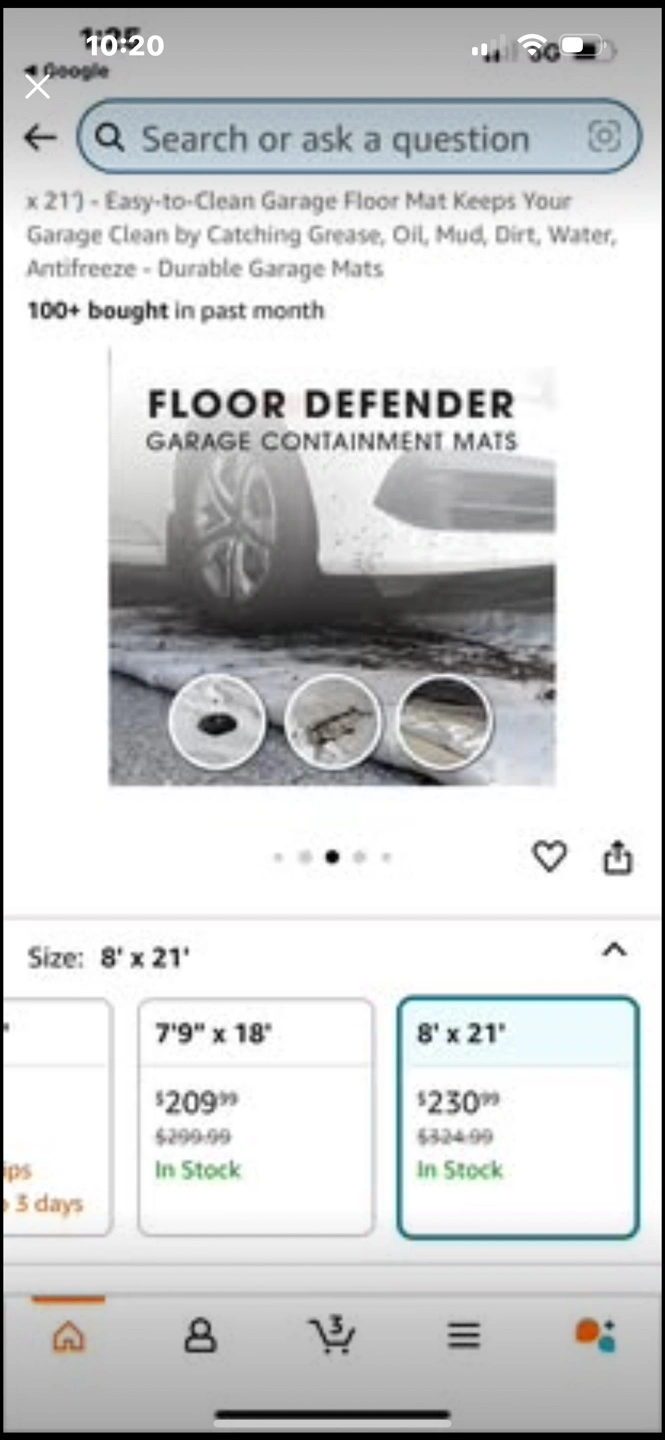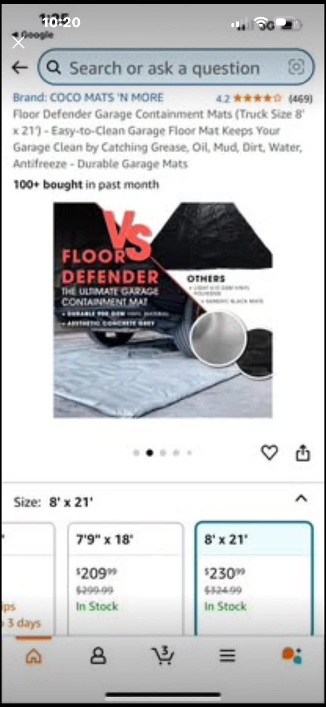 15Brand new Floor Defender garage mat. Keeps your garage floor clean. Catches grease, oil, mud, dirt, water, antifreeze. Durable. Easy to clean and install. Rolled and ready to use. Seals new new new Firm price 230& Amazon plus tax 265$ Your savings 65$ NEWCANADA MATS FLOOR DEFENDER GARAGE CONTAINMENT MAT, 8X21 FT Floor Defender Garage Containment Mats (Truck Size 8' x 21') - Easy-to-Clean Garage Floor Mat Keeps Your Garage Clean by Catching Grease, Oil, Mud, Dirt, Water, Antifreeze - Durable Garage Mats