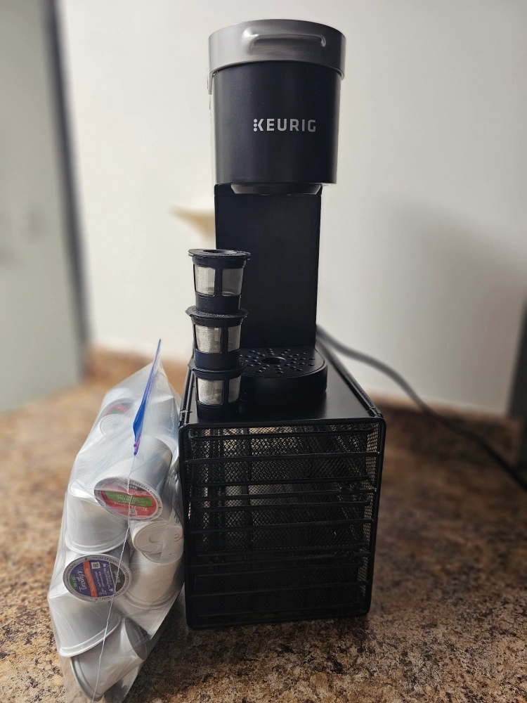 Keurig K-Mini with Pod Organizer, K-Cups and Reusable Filters
