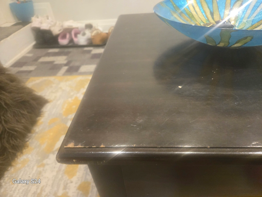This beautiful solid wood coffee table, has some minor wear and tear on it.