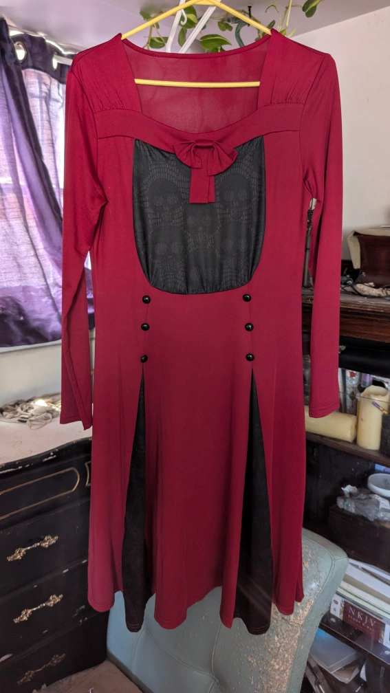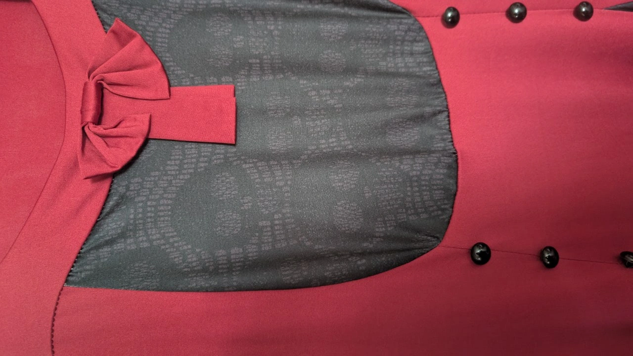Burgundy & Black Long Sleeve Dress with Bow Detail