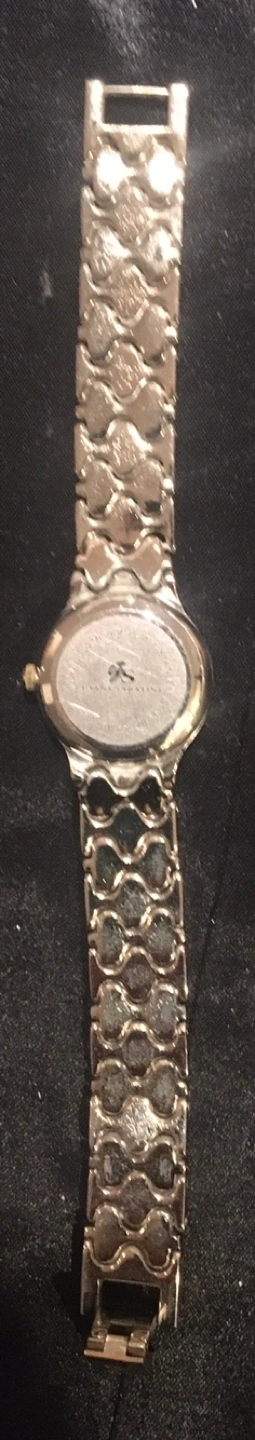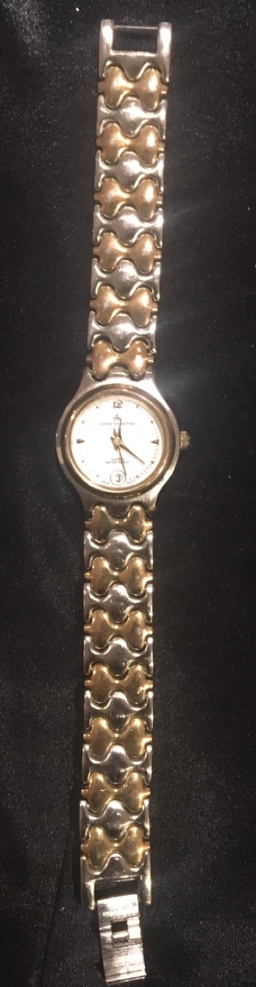 Elegant women's watch. Two-tone metal band. Round white face. Quartz movement. Excellent condition. Thanks and please see my other ads!