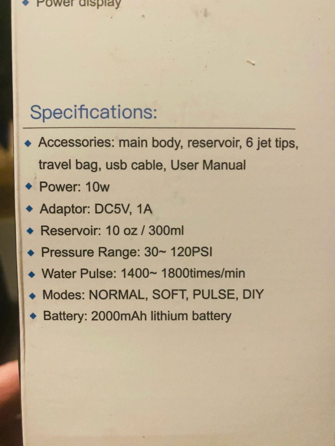New cordless water flosser. Portable and rechargeable. Features multiple modes, a 300ml reservoir, and six jet tips. Includes travel bag and USB cable. IPX7 waterproof.