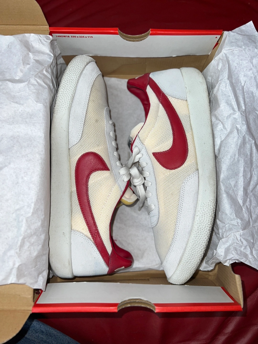 5Cream and red Nike Killshot 2 sneakers. New in box. Classic design. Comfortable and stylish.