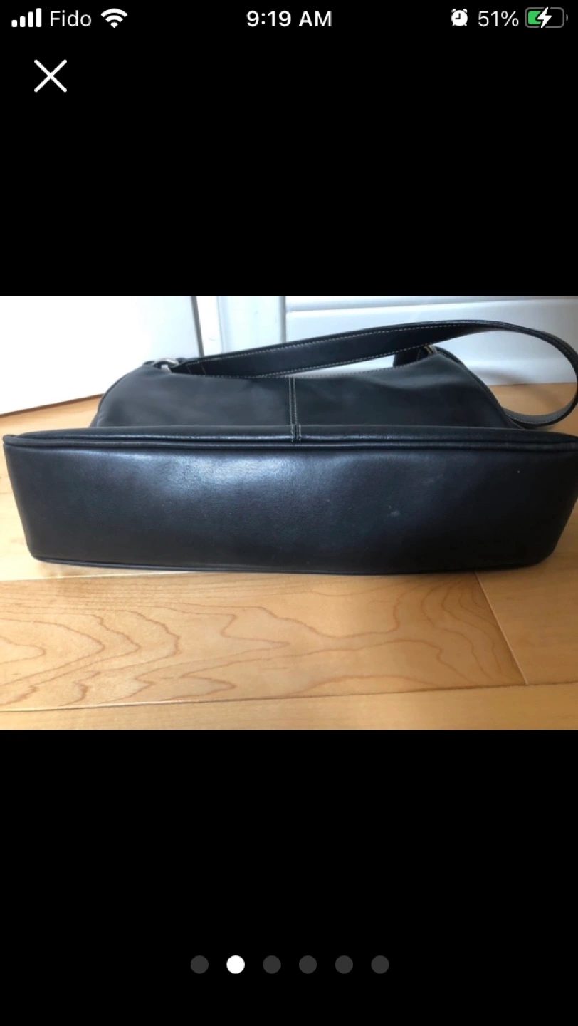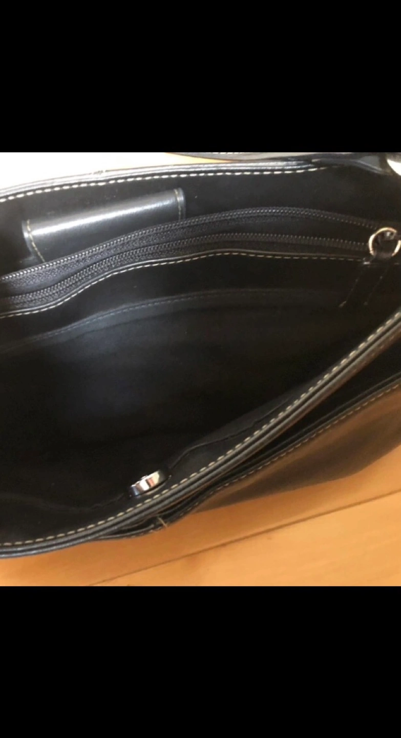 Black leather shoulder bag. Features a single main compartment and interior pockets. Silver-toned hardware. Nice everyday bag. Pick up @ midtown or downtown🤗