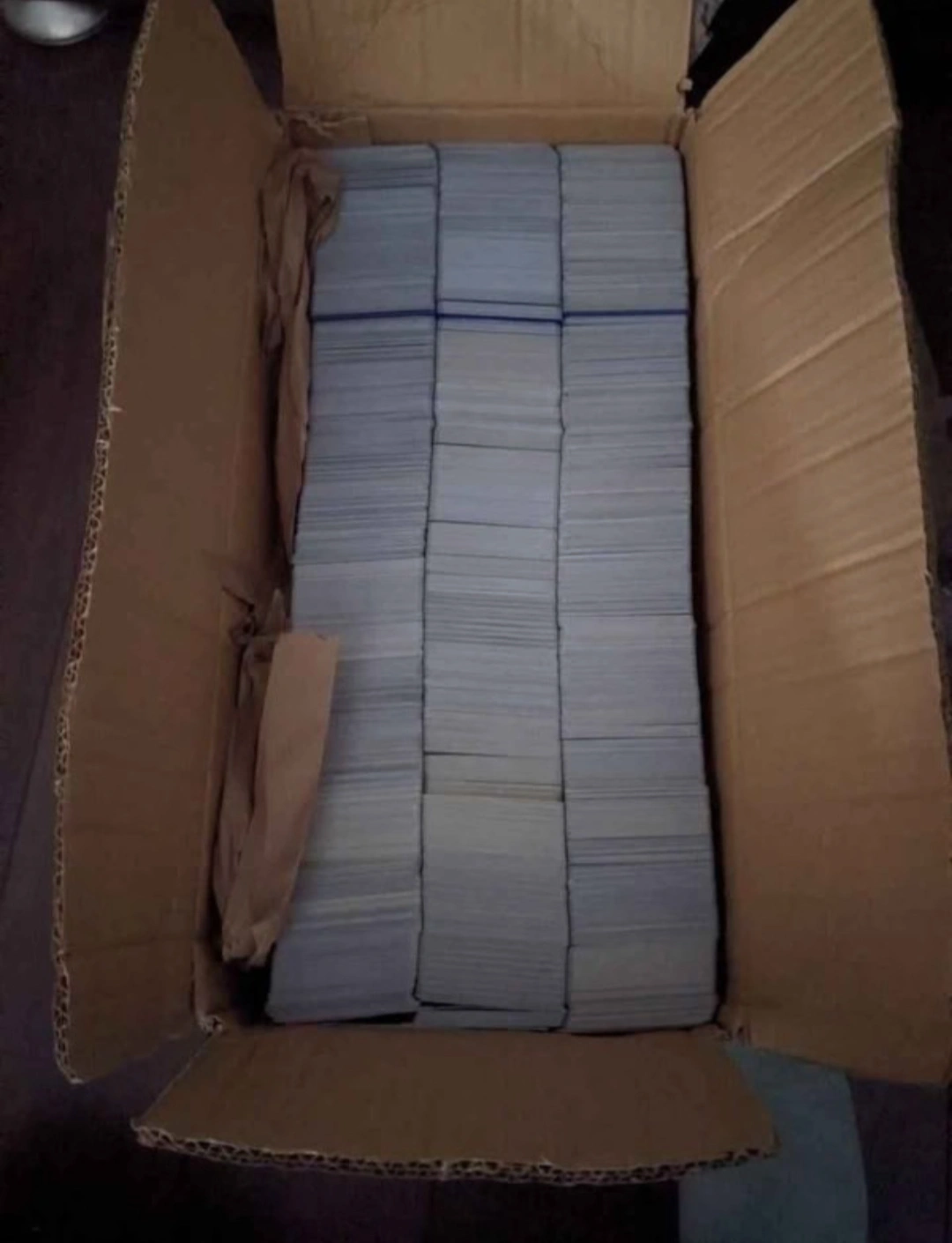 There are approximately 10,840 and 11,600 cards. 0.045$ per card