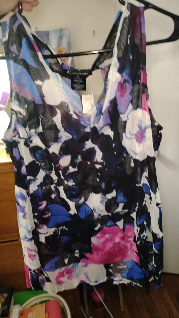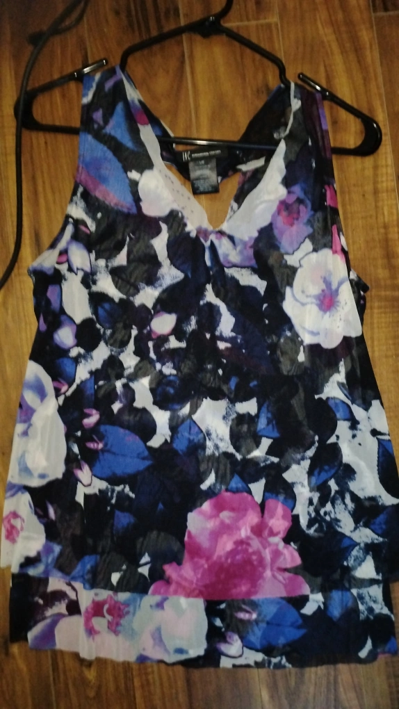 Beautiful floral print. Lightweight and sheer. V-neck. Size Large. Excellent condition.
