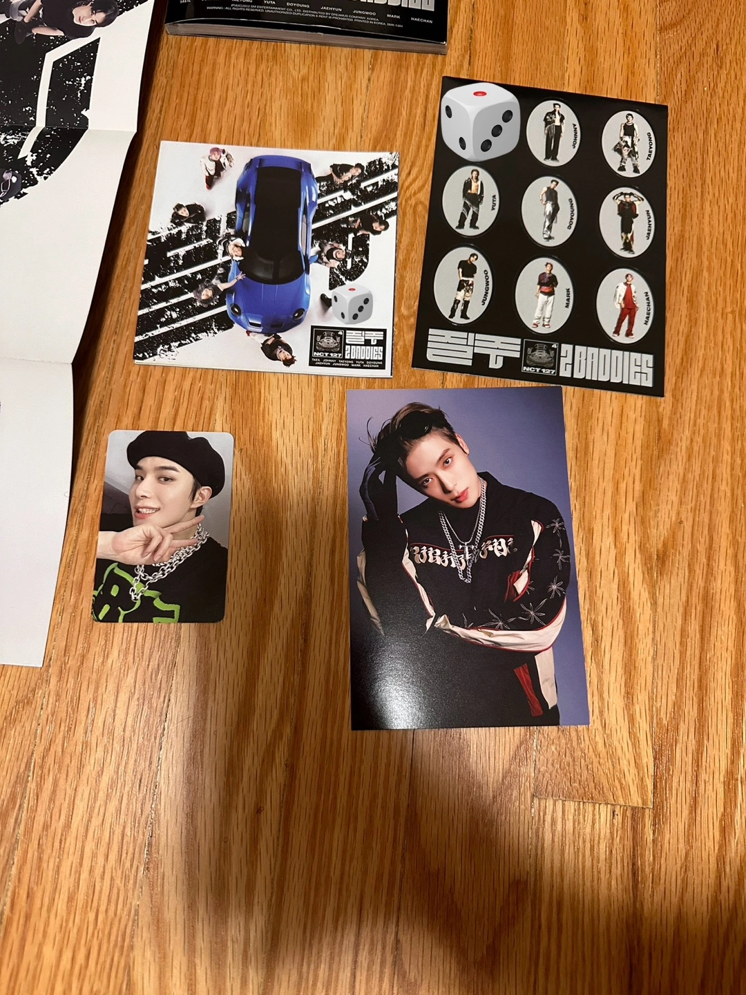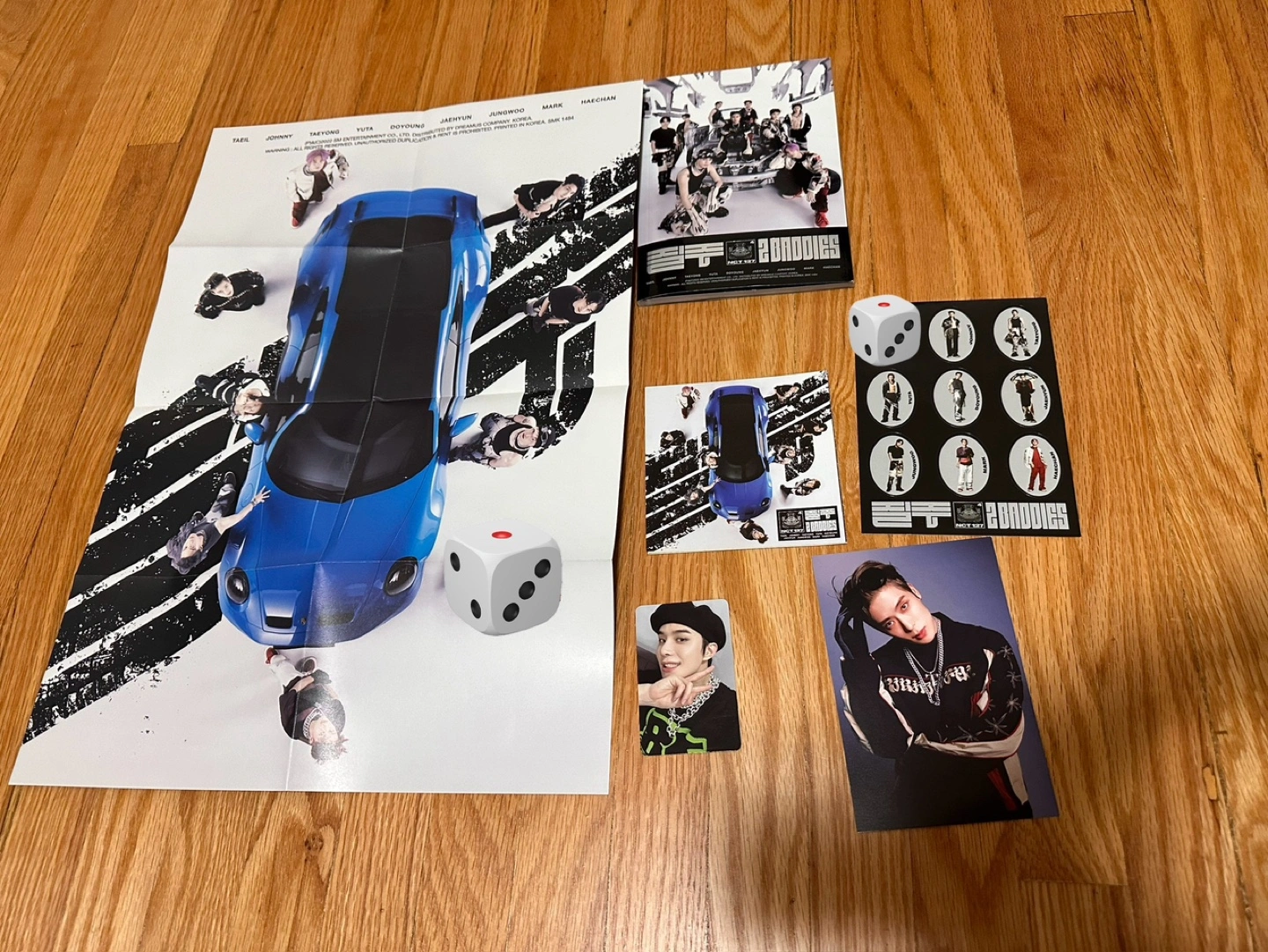 NCT 127 2 Baddies Black Album. Includes Jaehyun and Jungwoo photocards, stickers, and CD. Comes with a poster. Unsealed, but in good condition.