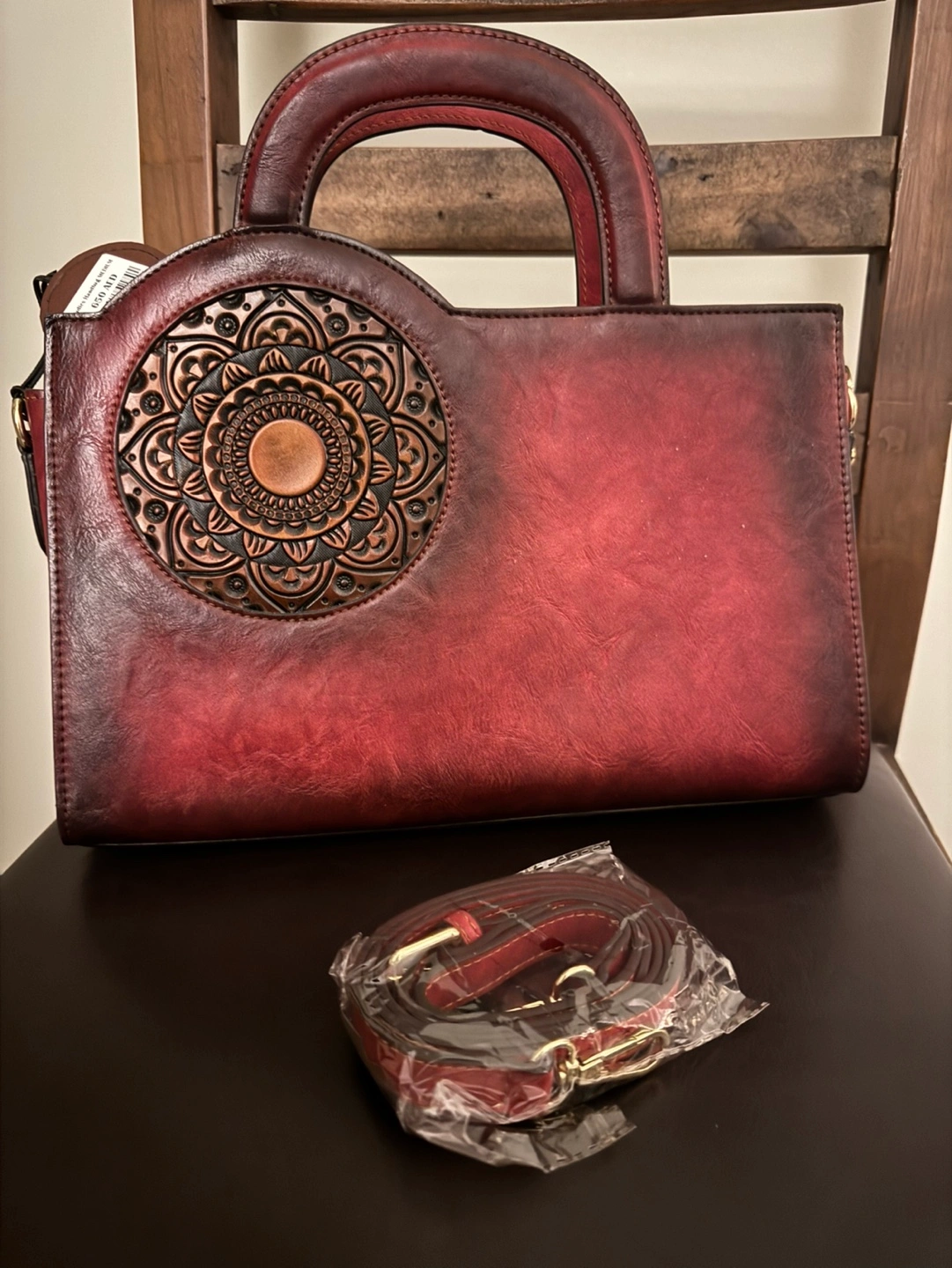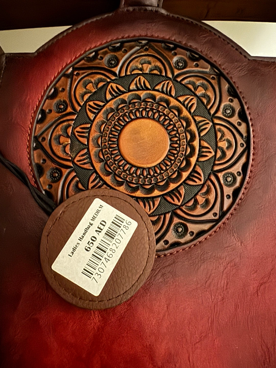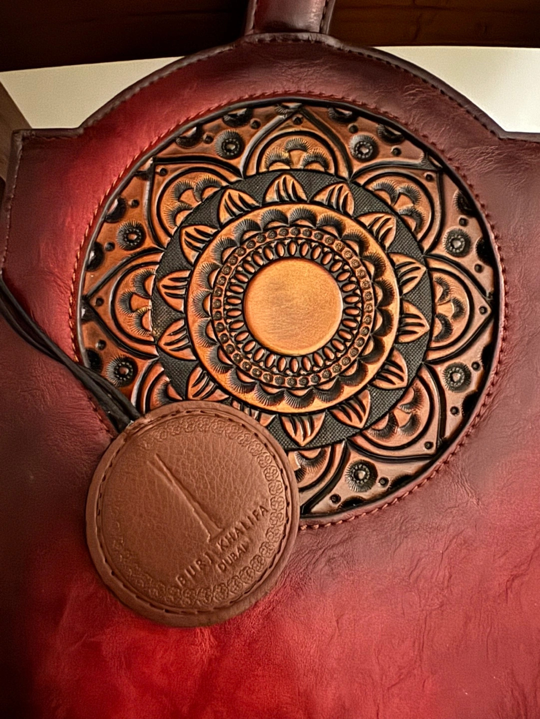 Camel Leather purse from Burj Khalifa Dubai UAE. Includes a detachable shoulder strap. Zipper closure. Brand new!