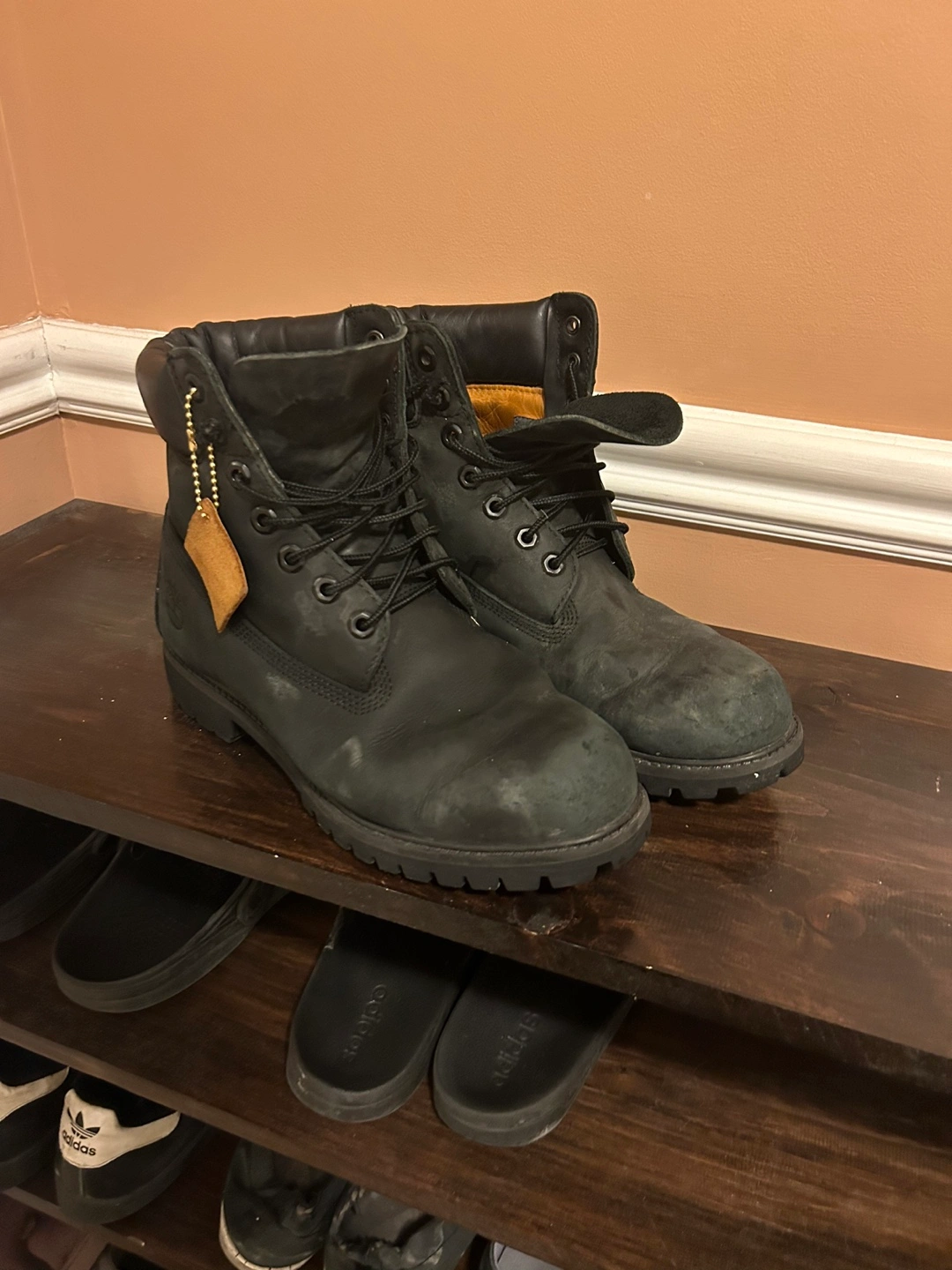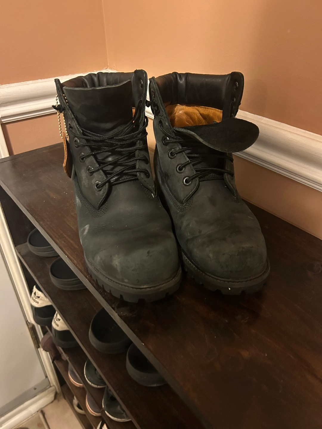 126Pair of black leather Timberland boots. Classic style. Good condition. Ready to wear.