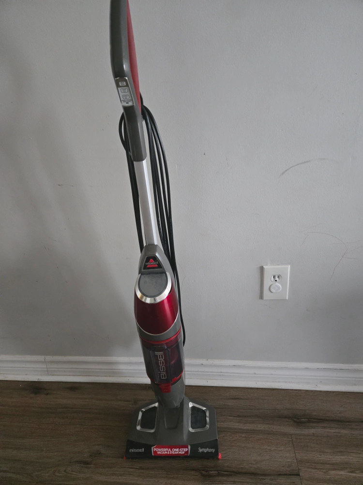 Used Bissell Symphony steam mop. Powerful cleaning. Excellent for pet owners. Includes power cord. Check images for details.