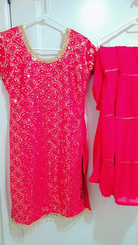 31Gorgeous red salwar kameez. Intricate gold embroidery. Matching red dupatta. Stunning outfit, perfect for any special occasion.