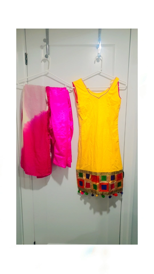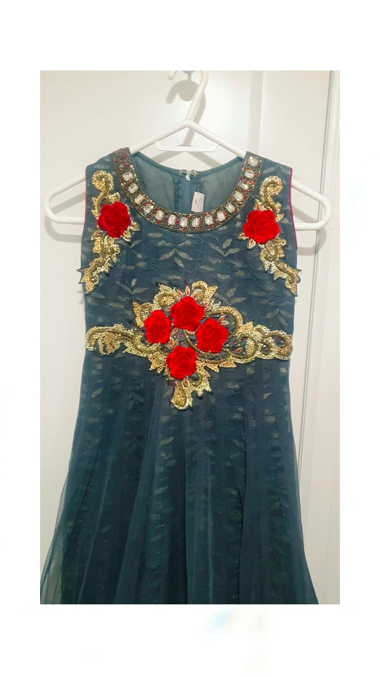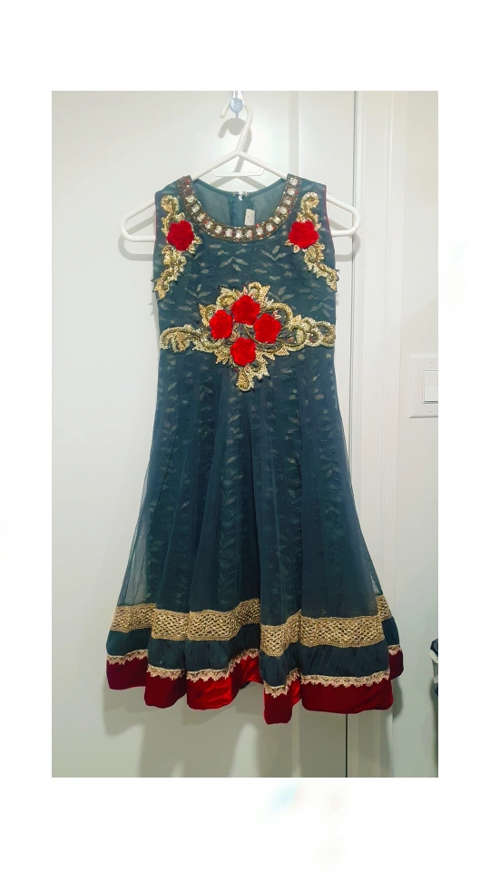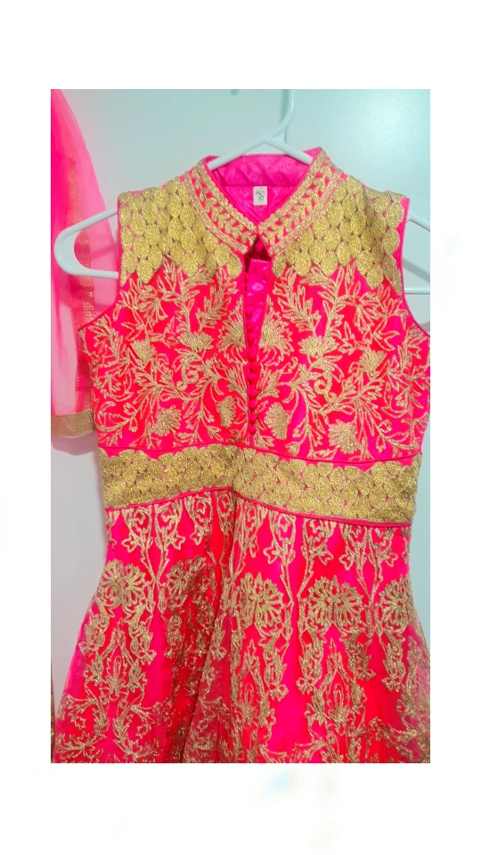 Beautiful girls' dress. Features pink and blue embroidery. Includes a matching dupatta. Perfect for special occasions.