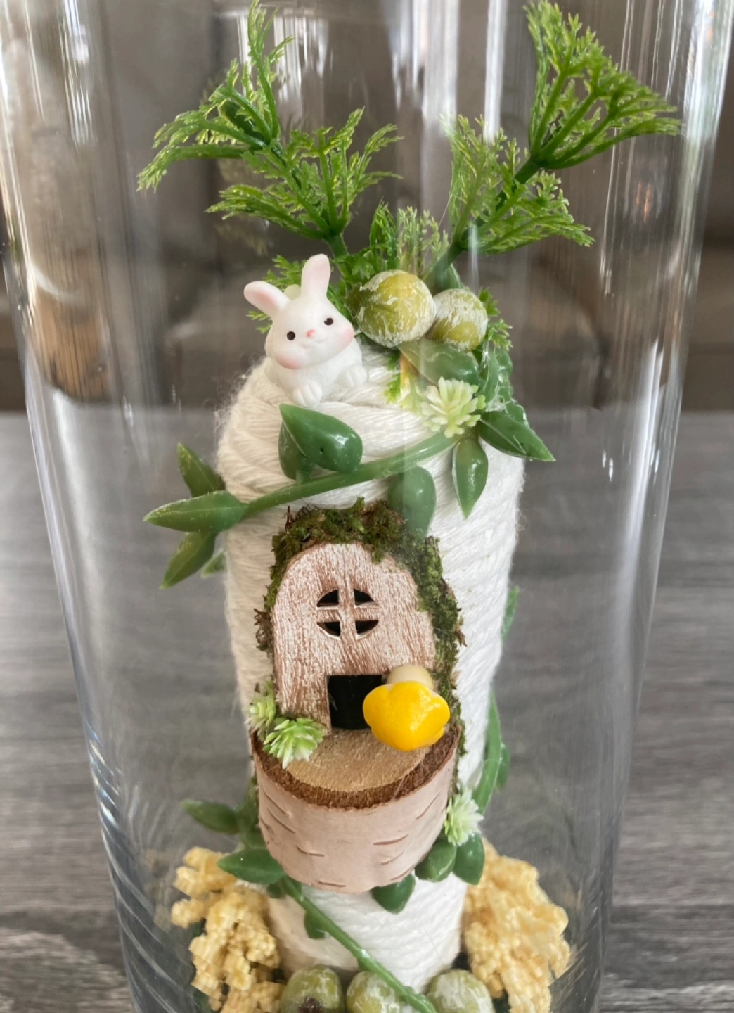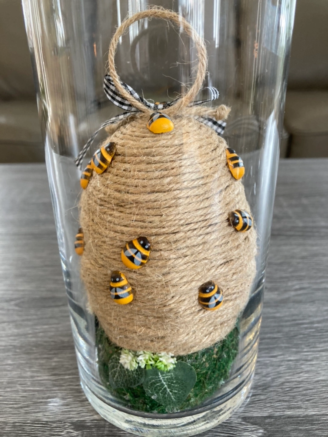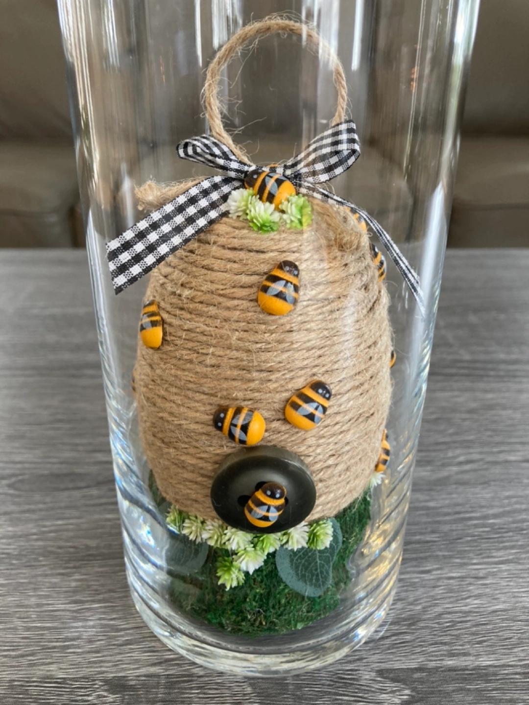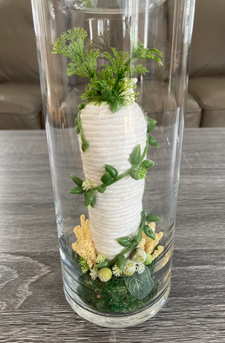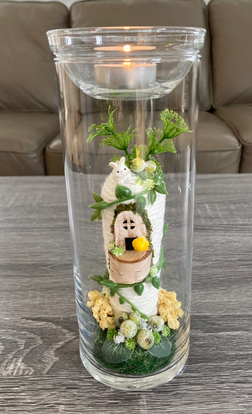 $20 each or all for $50 🐇Spring/ Easter Themed Glass Candleholder with Bunny Carrot House Approx. 9.5” tall by 3.5” diameter Glass candleholder with removable glass insert, hold a carrot house made of white rope. This cute bunny’s home features a doorway with a mini mushroom door handle and birch slice ledge and is surrounded by artificial flowers, greenery, berries with green moss base. Short Spring/Easter Themed Glass Candleholder with Bunny Approx. 6 1/2” tall by 3 3/4” diameter Glass candleholder with removable glass insert, holds twine carrots, bunny, moss base, artificial berries, and flowers. Spring Themed Glass Candleholder with Beehive Approx. 9.5” tall by 3.5” diameter Glass candleholder with removable glass insert holds a jute wrapped beehive with mini wood bees, moss base and artificial flowers and greenery. Please follow the link below for more. Thanks. Facebook page: Artizanna https://www.facebook.com/profile.php?id=100073692274142 Or Instagram: @artizanna__