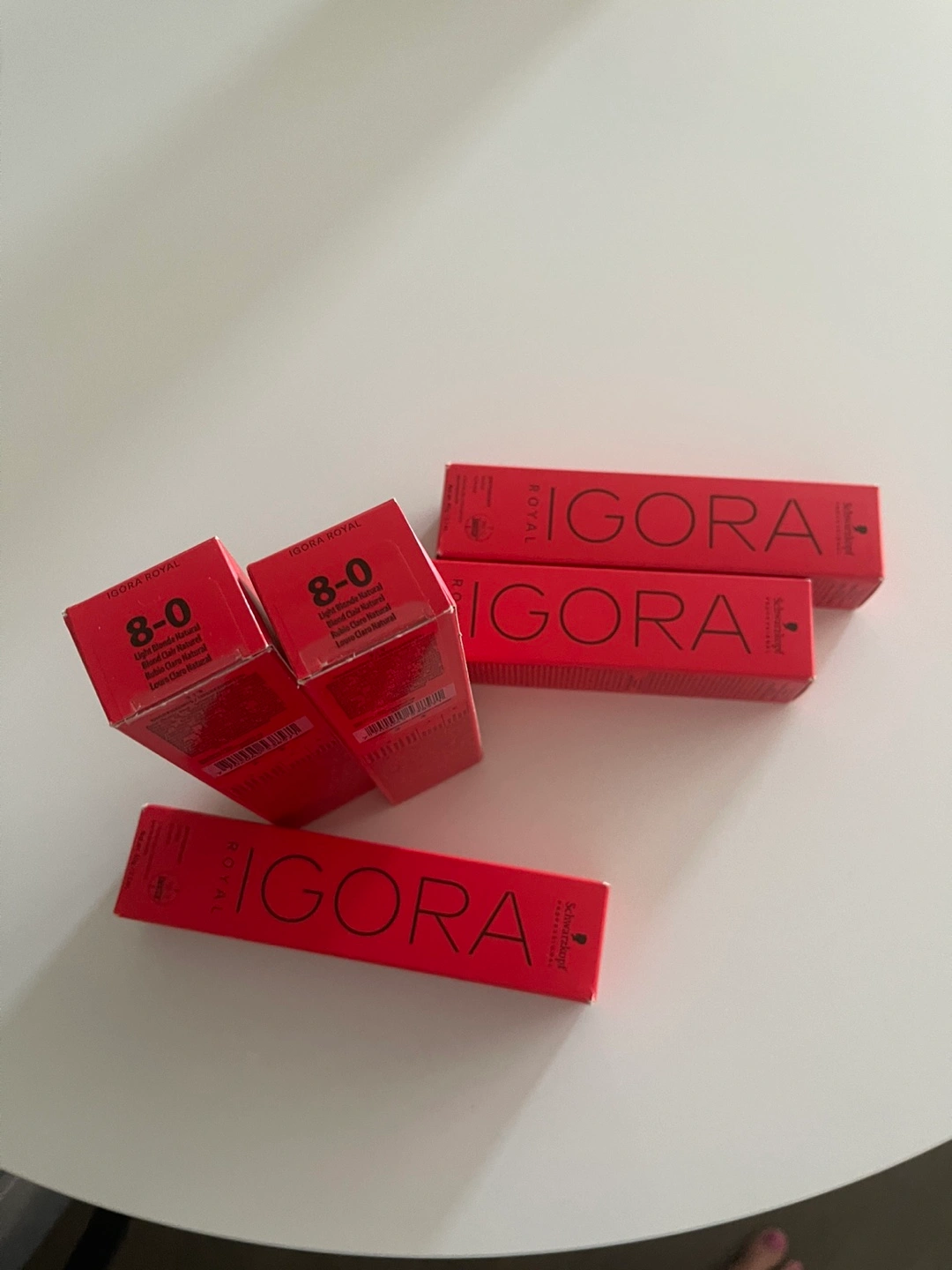 5 tubes of Schwarzkopf Igora Royal permanent hair colour 8-0 Light Blonde Natural. Unopened tubes. Paid $13.99 each tube. I changed my colour that’s why I’m selling