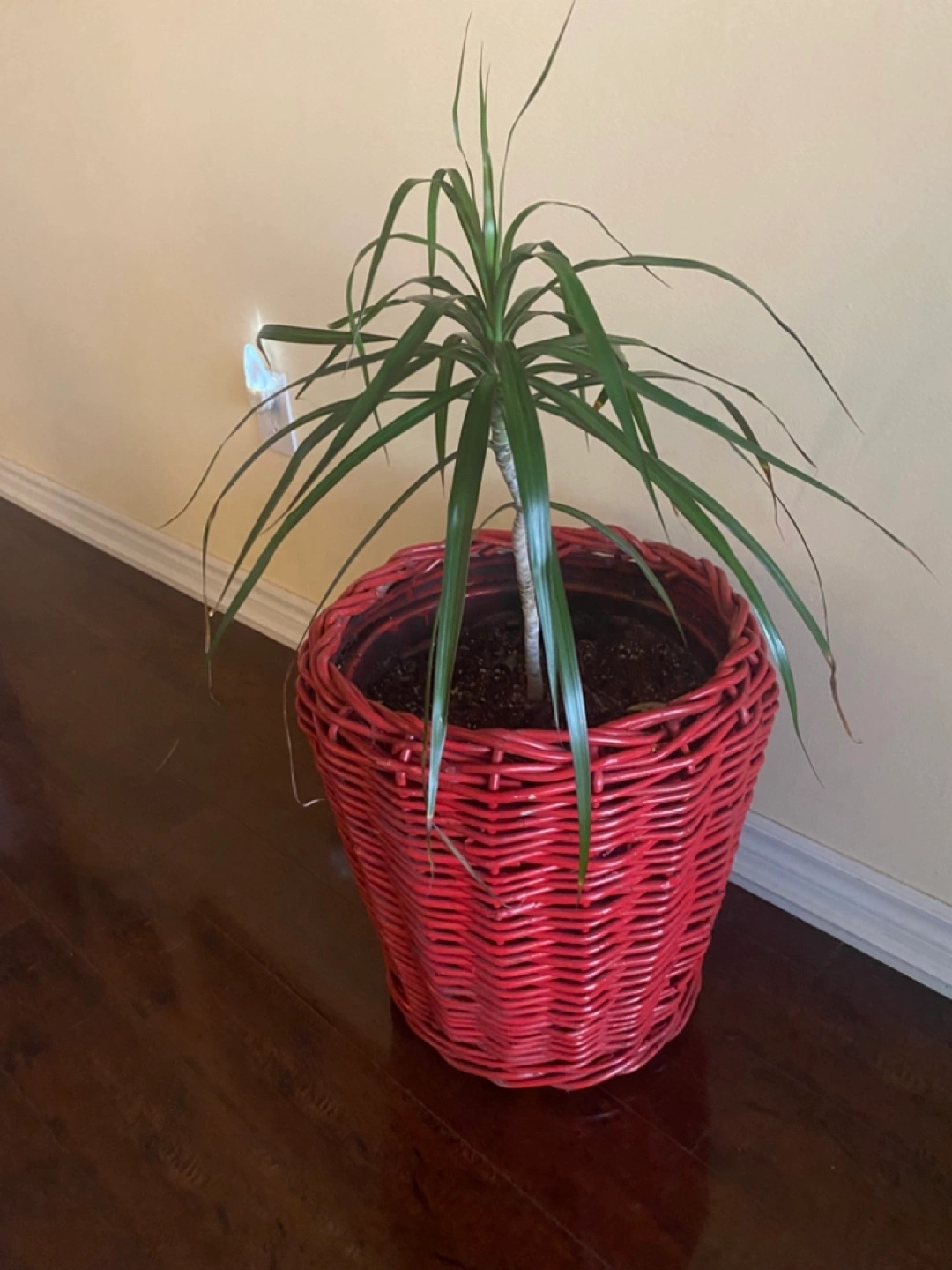 Healthy Dracaena Marginata plant in a red wicker pot. Great addition to any home. Pot measures approximately 17 inches in diameter.❤️