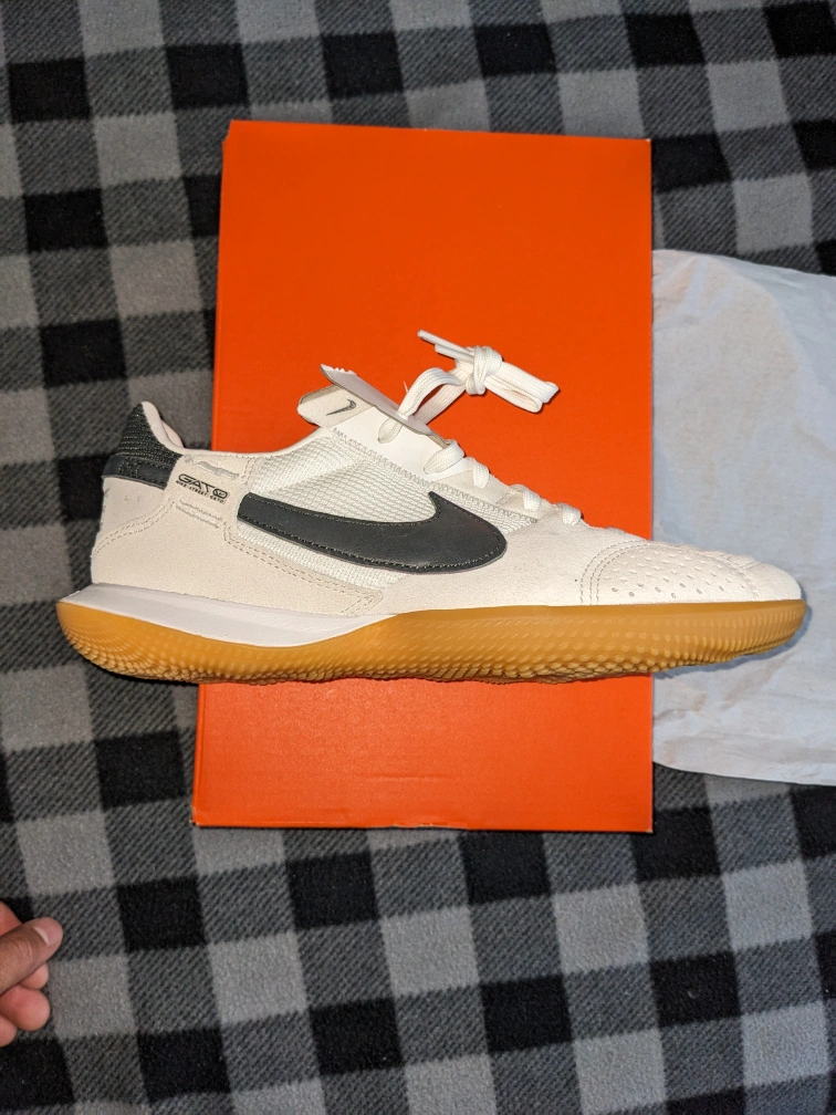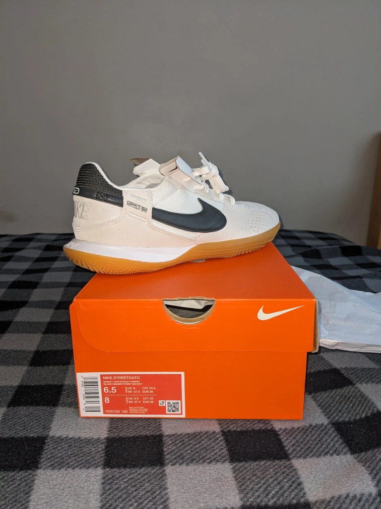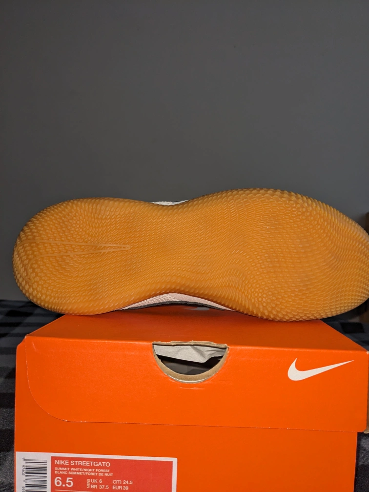 New Nike Streetgato indoor/court shoes. Size 6.5. Off-white colourway with gum sole. Minimalist design. Great for indoor sports. brand new I bought the wrong size so I don't need them. never worn never played on any field or court with them