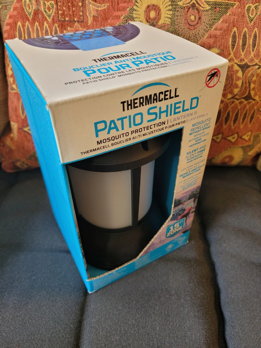 New in box. Repels and kills mosquitoes. Provides light. No open flame. Effective, odour free, silent. Portable. Includes lantern, butane cartridge, and insect repellent mats. Covers a 4.5m zone.