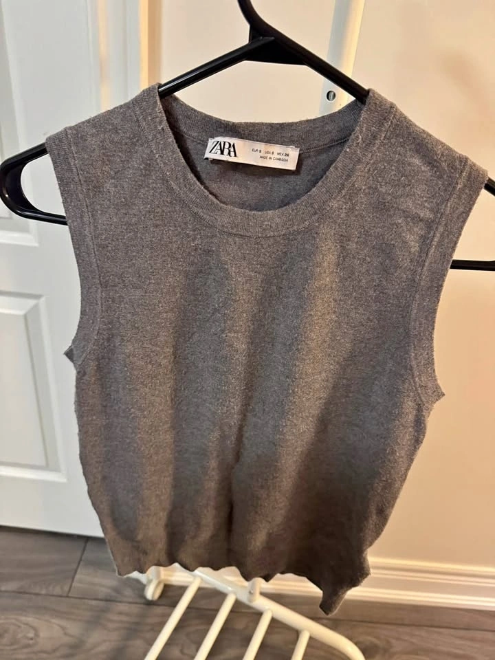 Awesome clothing bundle with 7 pieces! Includes: Zara grey sleeveless knit top, size small (EUR S, USA S, MEX 26). 90 Degree by Reflex purple long sleeve 1/4 zip athletic top, size small. Vertigo black yoga pants, size Xsmall. Daisy Street grey cardigan, size small. Fashion Nova green dress, size small. ASOS red dress, size 4. Object green dress, size 38.