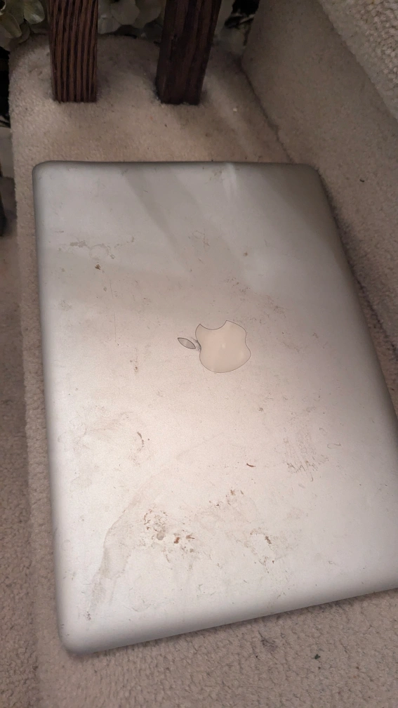 Old MacBook Air. Dusty and dirty. Screen is heavily soiled. Sold as-is for parts or repair. No charger included.