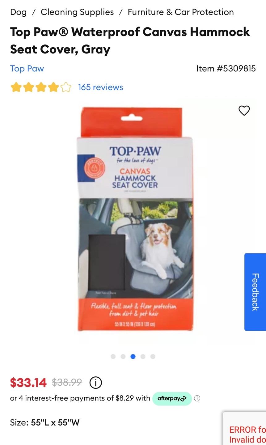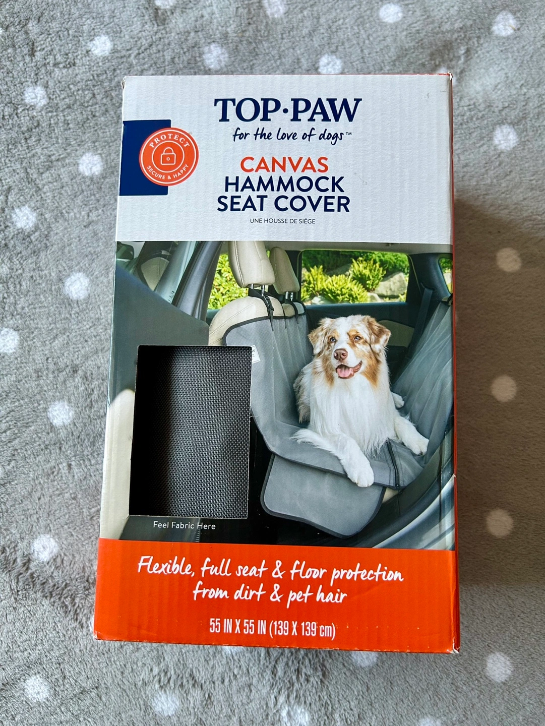 Top Paw Waterproof Canvas Hammock Seat Cover, Gray, 55"L x 55"W