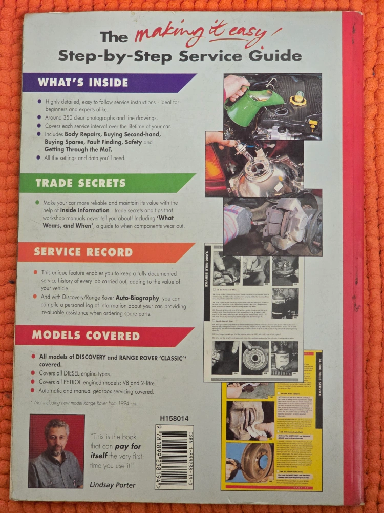 Step-by-step service guide and owner's manual. Covers Discovery models 1989 to 1996 and Range Rover Classic 1970 to 1996. Includes all petrol and diesel engines. Detailed instructions, photographs and line drawings. A valuable resource for maintaining your vehicle.