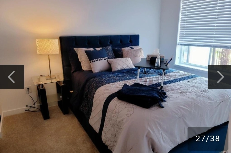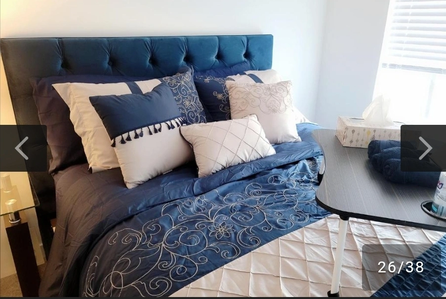 Navy blue velvet queen bed with storage ( excellent condition) and queen mattress - 500