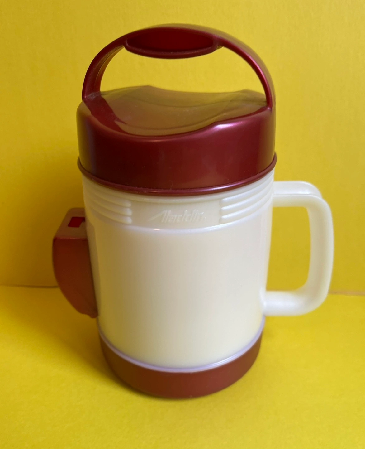 Aladdin thermos flask with carrying handle and a screw-on lid. Perfect for keeping your drinks hot or cold.