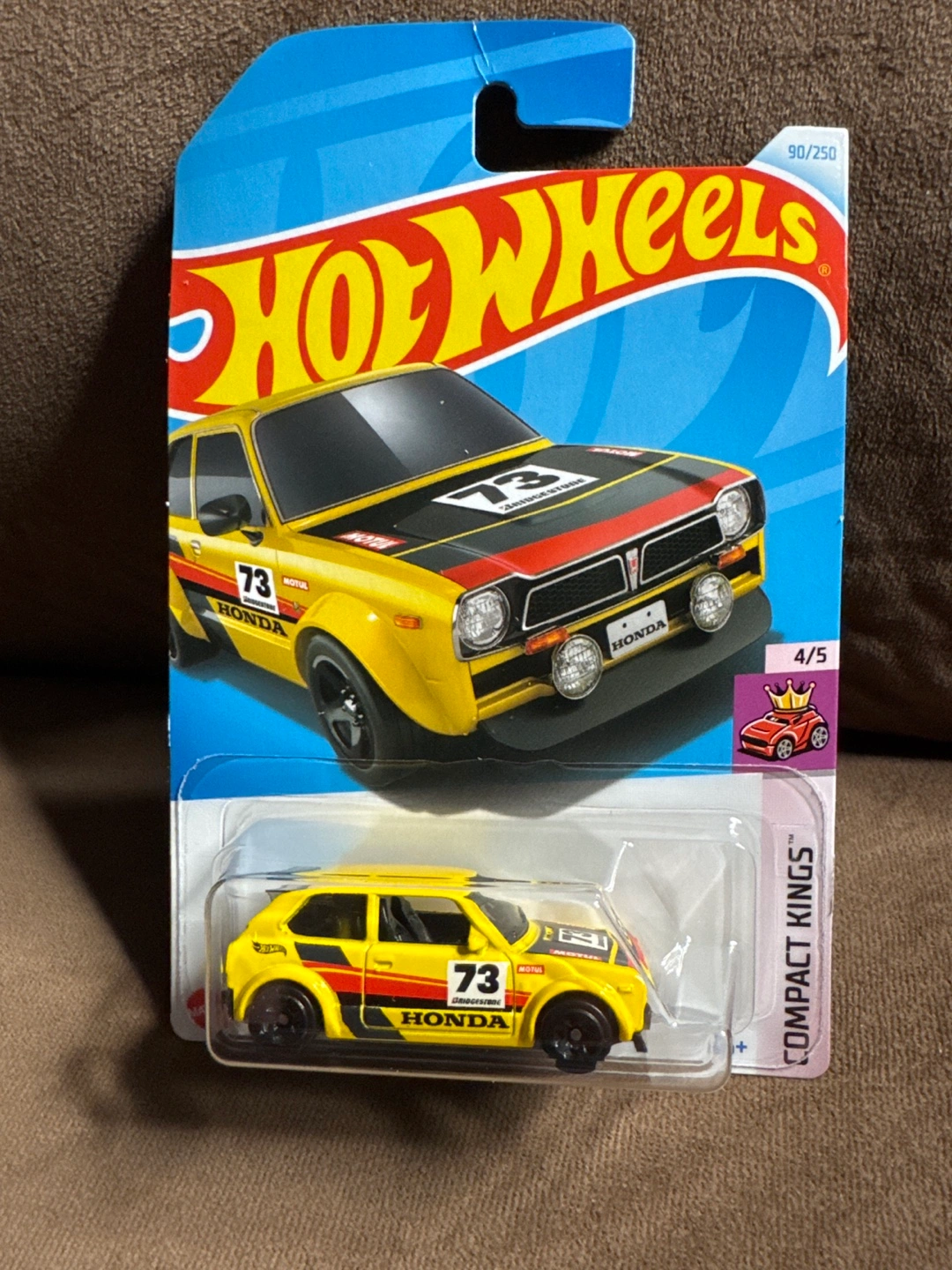 851Yellow Honda Civic diecast car. Part of the Hot Wheels Compact Kings series. Number 90/250.