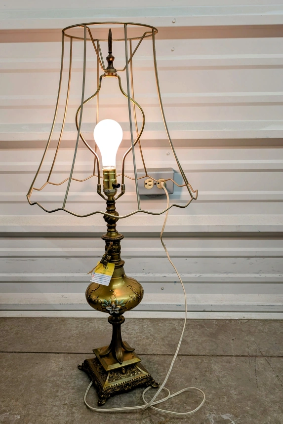 Vintage Table Lamp Ornate Base and Enamel Florals Wire Shade 🧡