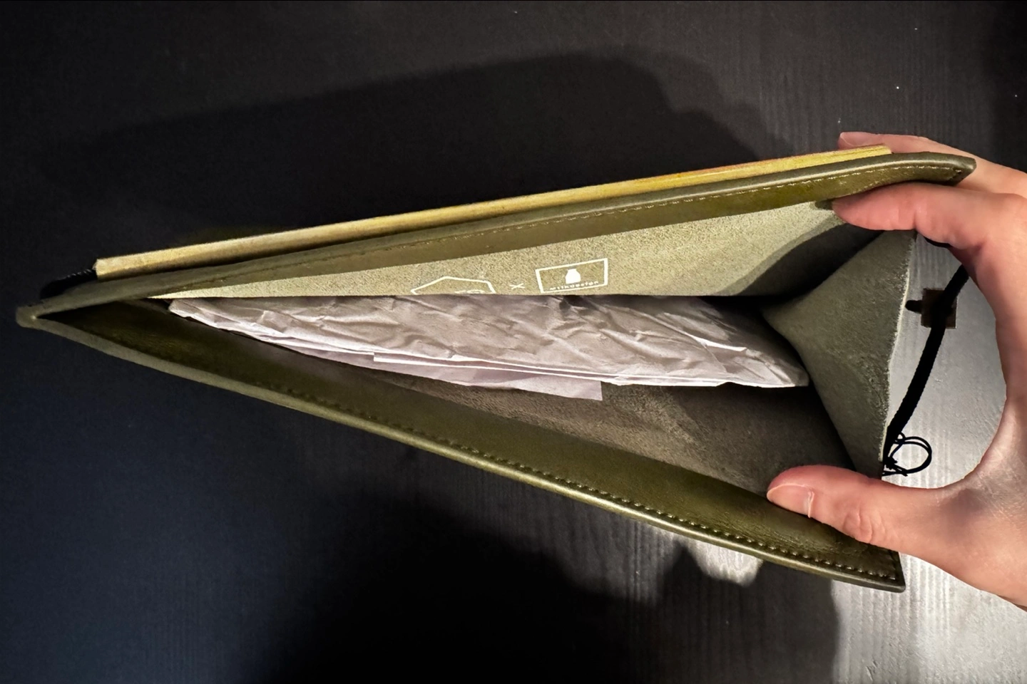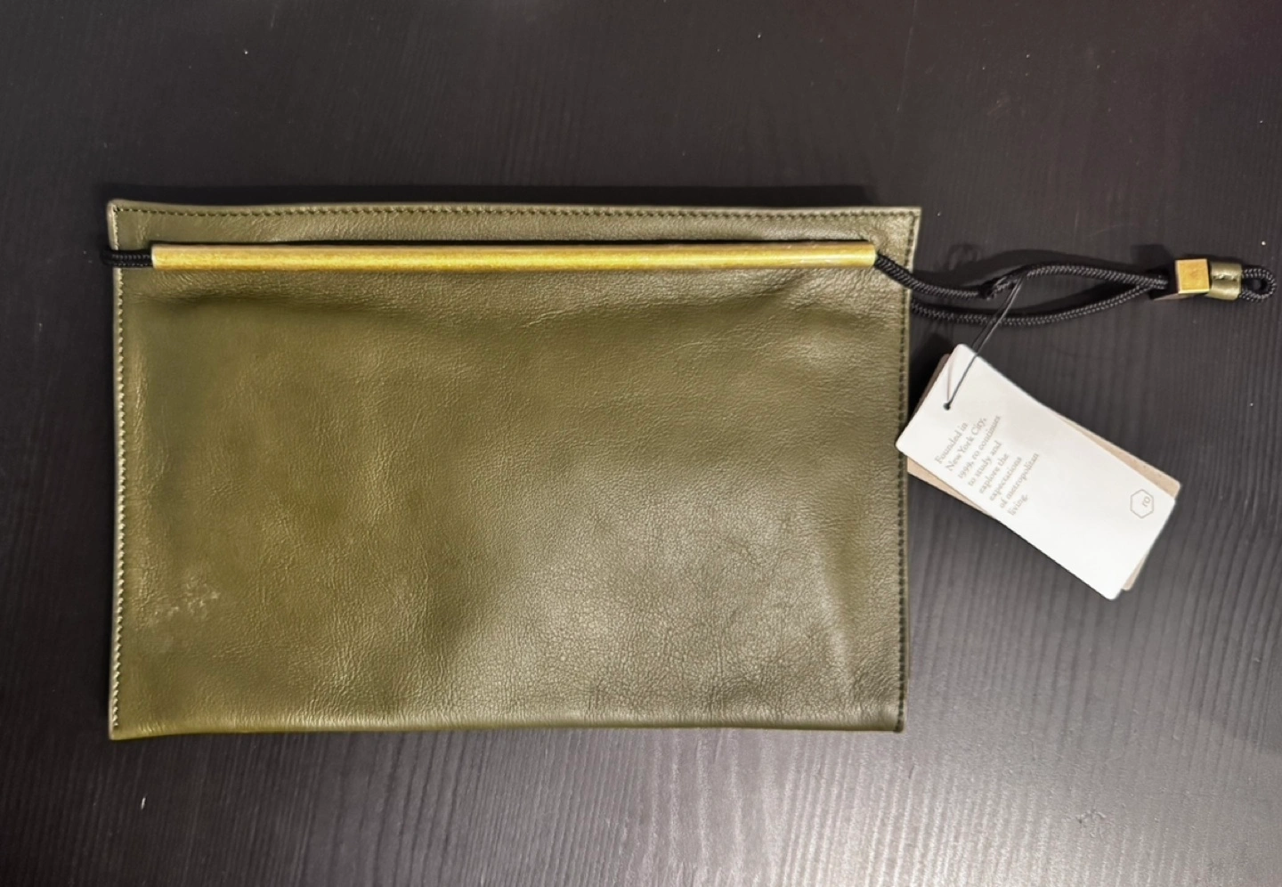 ro. Bag Olive Green Leather Clutch with Brass Clasp