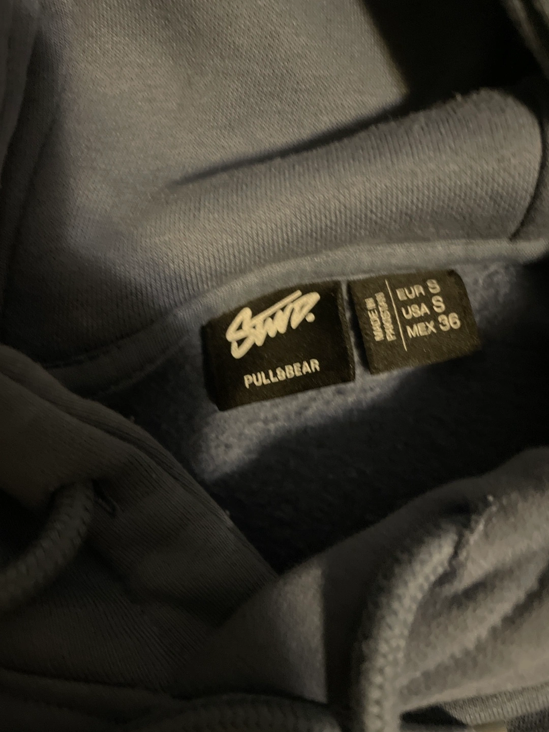 Grey Pull&Bear hoodie. Features a large 'Stud 91' graphic on the front. Size small. Good condition.