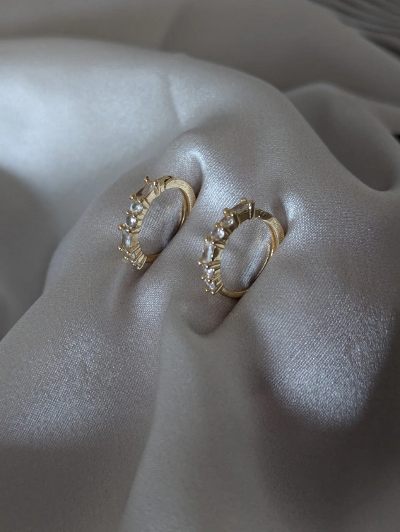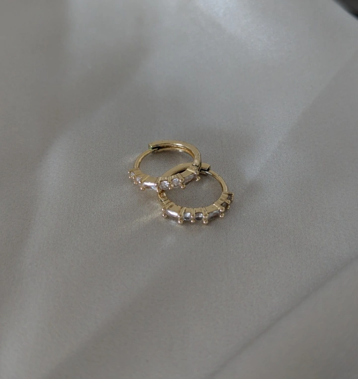 These are 14K Gold Plated S925 Sterling Silver hoop earrings with Cubic Zirconia.