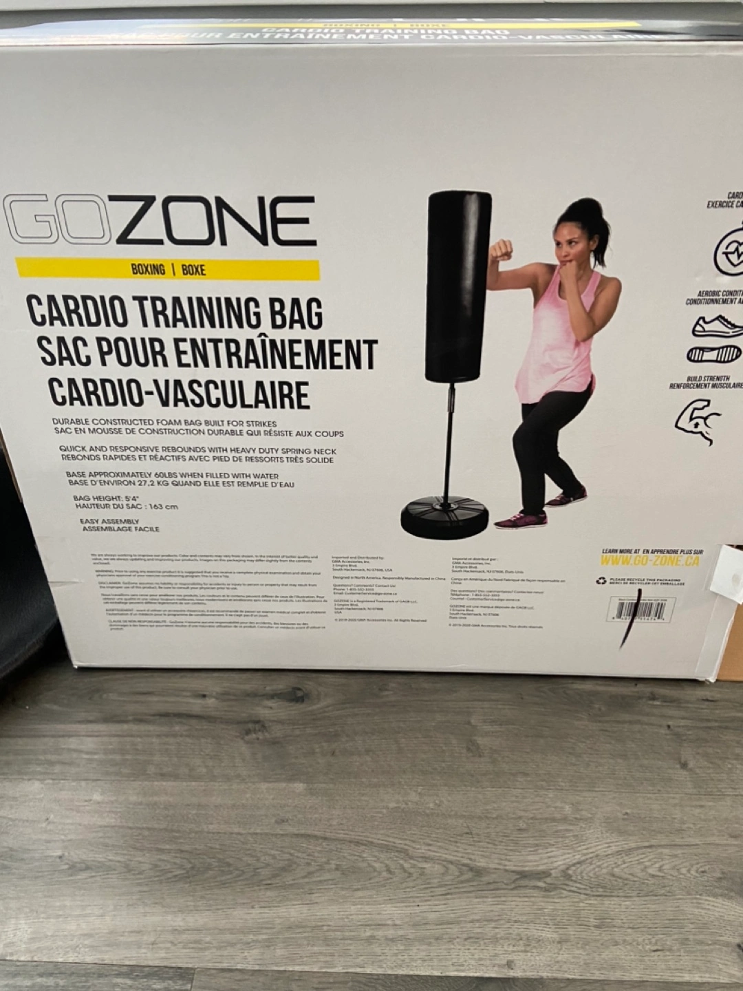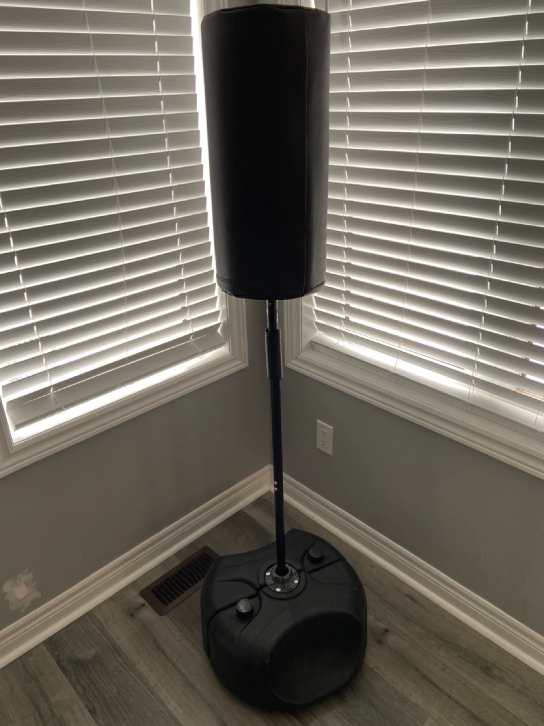 Freestanding boxing bag. Durable foam construction. Quick and responsive rebounds. Heavy duty spring neck. Water-filled base for stability. Easy assembly.
