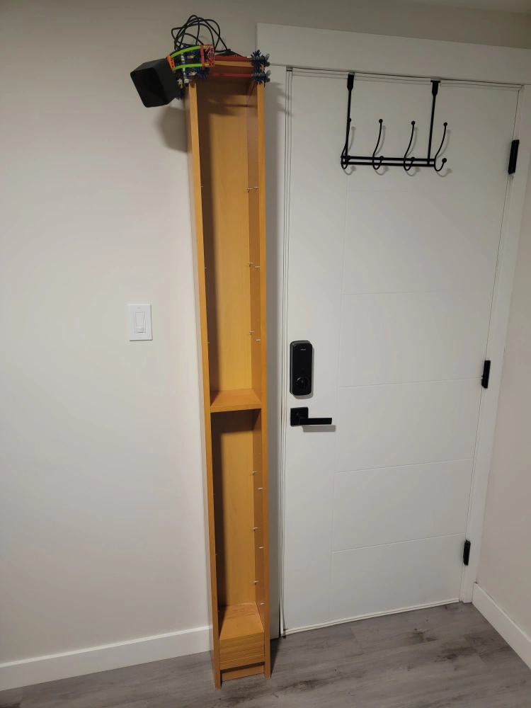 HTC Vive VR headset. Includes controllers, base stations, the deluxe audio strap addon, and all original accessories. Requires a VR-capable computer. Good condition, minor wear. Included, if you want, are the tall stands and Knex brackets I used for the base stations. shelves are about 6 foot 9 inches tall, 8 inches wide, and 7 inches depth. Feel free to test before buying.