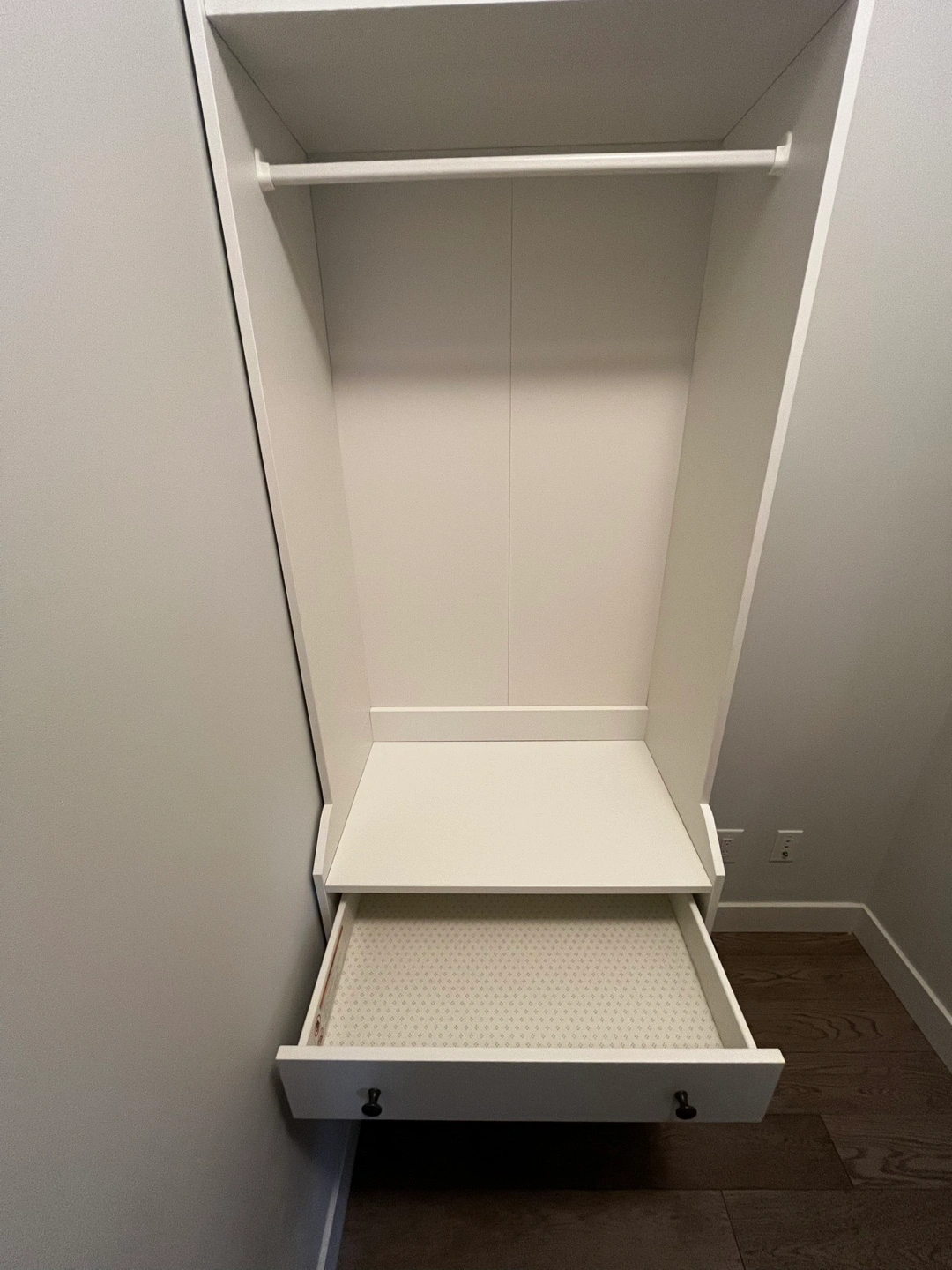 44Selling a gently used white dresser in excellent condition. It has 3 drawers and a rail to hang clothes. Also has storage above clothing rail. 70 length x 46 width x 200 height (cm) Open to negotiation and looking to sell soon! Pick up in Burnaby